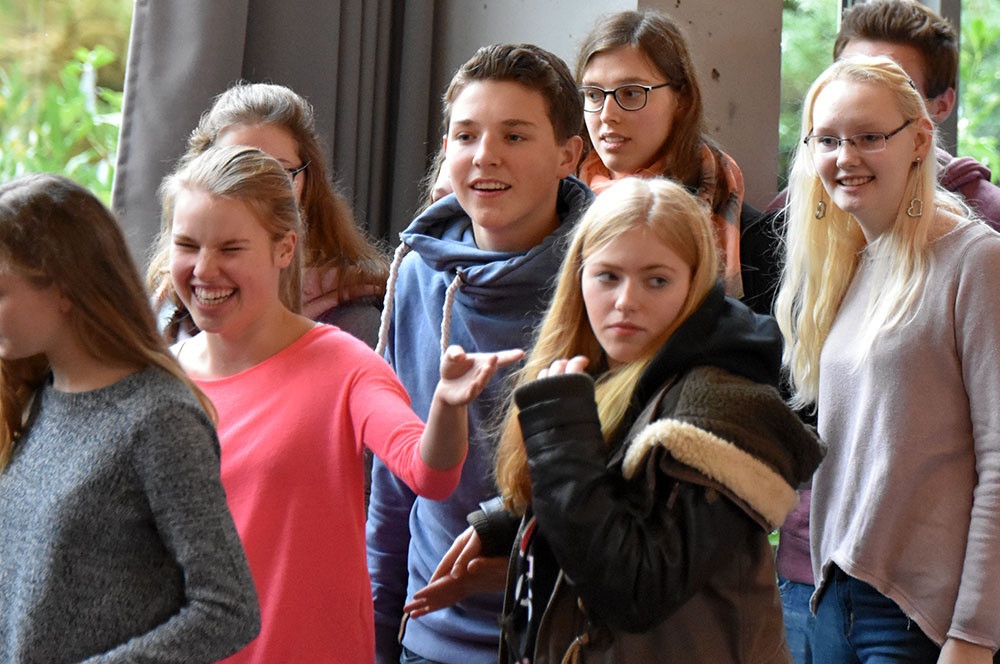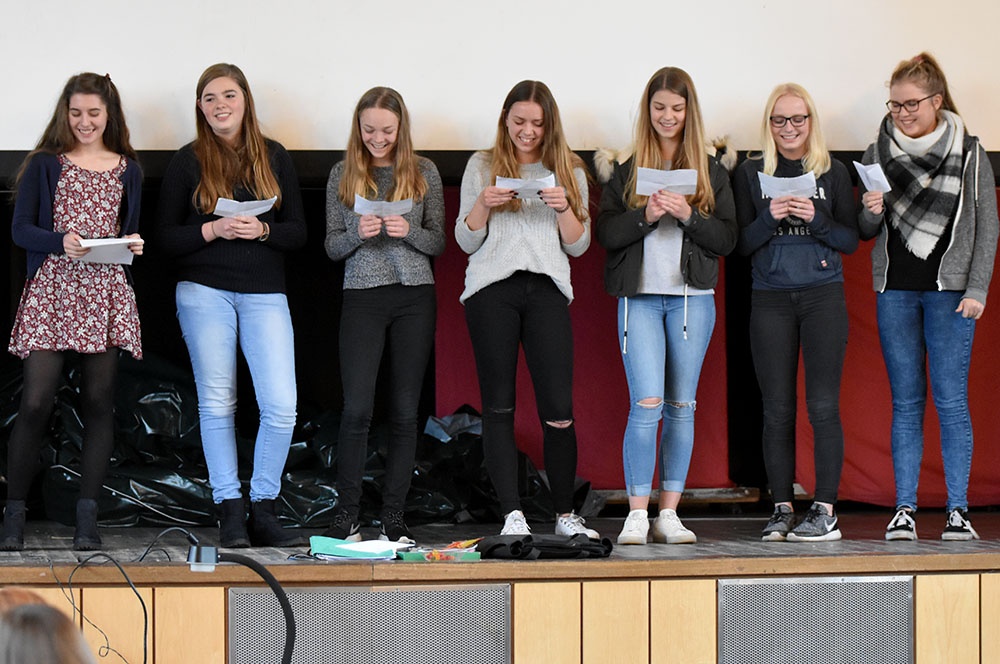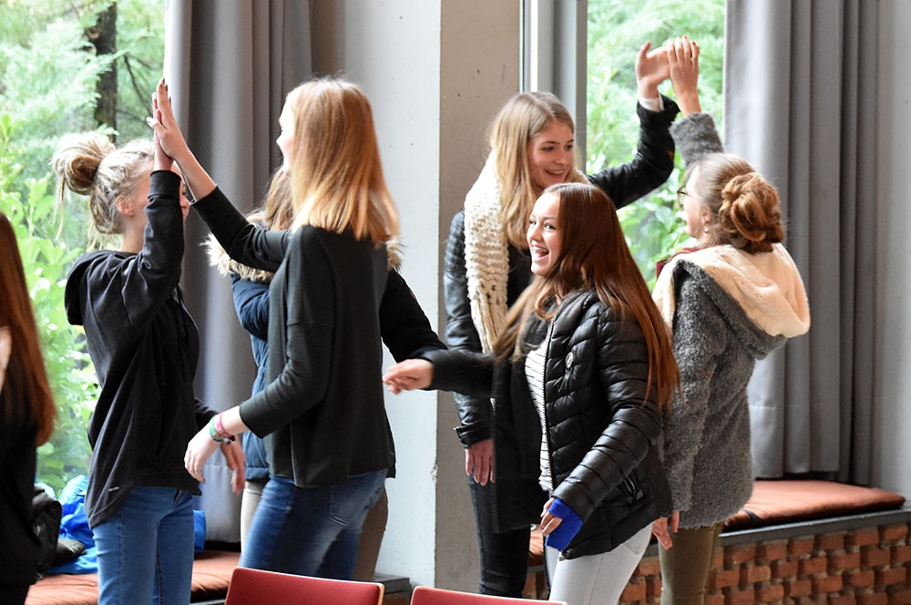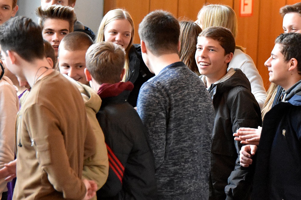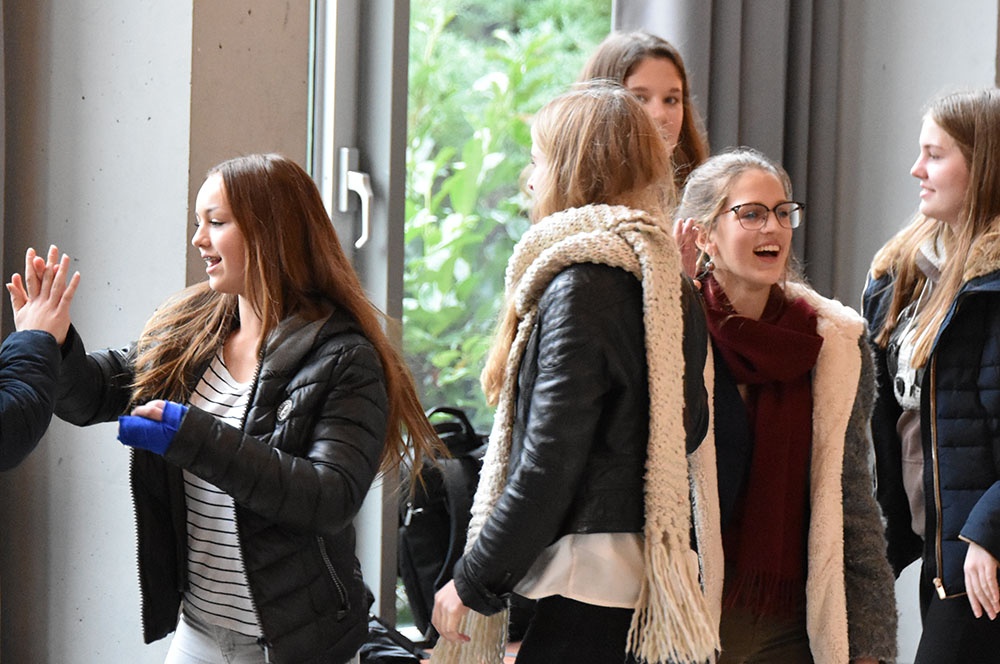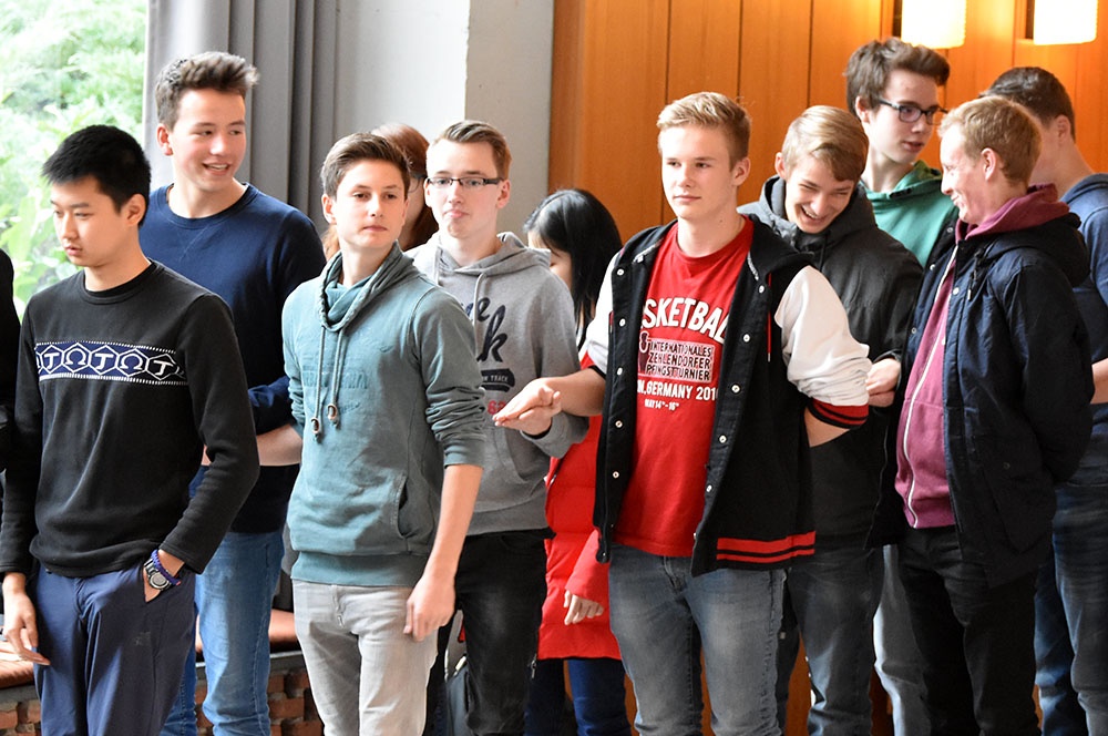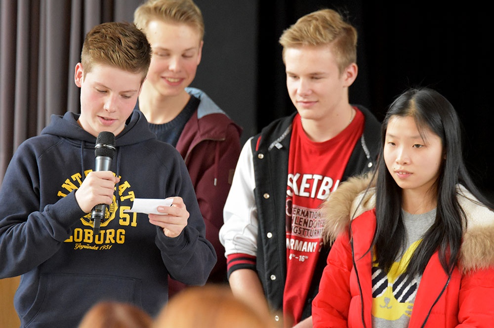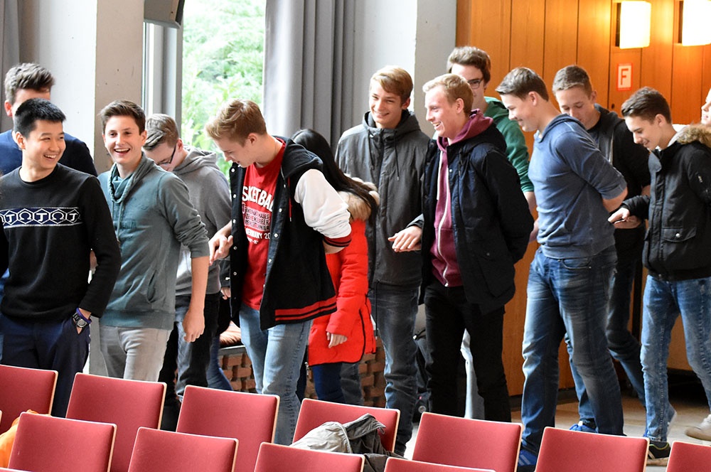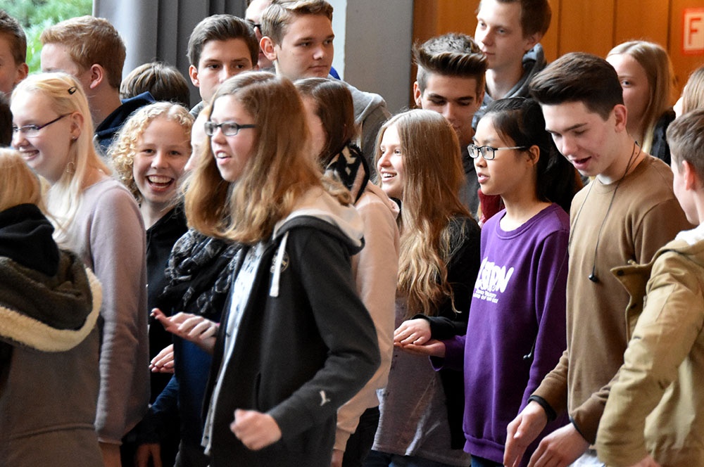Am Donnerstag, den 10. November fand zum vierten Mal das Meet&Greet in der Aula statt, bei dem die 19 internationalen SchülerInnen der EF im Mittelpunkt standen. Die deutschen MitschülerInnen lernten etwas über die sechs verschiedenen Nationen (China, Tschechien, Polen, Russland, Aserbaidschan und Ukraine), mit denen sie zusammen zur Schule gehen. Neben dem besseren Kennenlernen der ausländischen SchülerInnen standen unter anderem das Mit-Stäbchen-Essen, das Kennenlernen einer russischen Kampfsportart sowie Lieder verschiedener Länder und tschechische Ostertraditionen auf dem Programm. Den Abschluss bildete ein polnischer Tanz, bei dem alle mitmachen konnten. Insgesamt ein gelungener Nachmittag, an dem unsere deutschen SchülerInnen viele Eindrücke aus unterschiedlichsten Kulturen sammeln konnten.