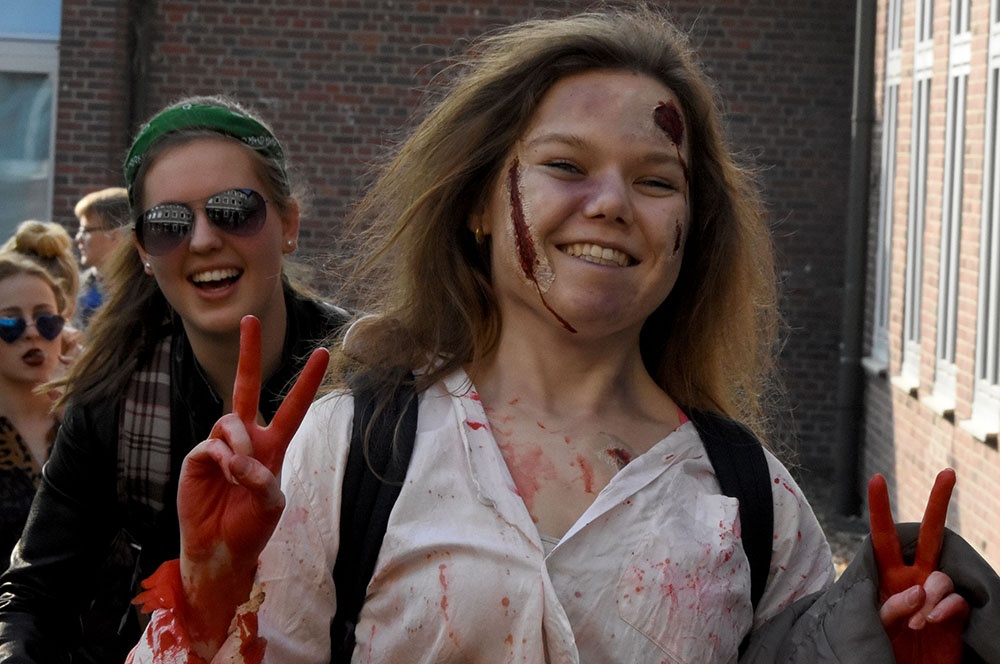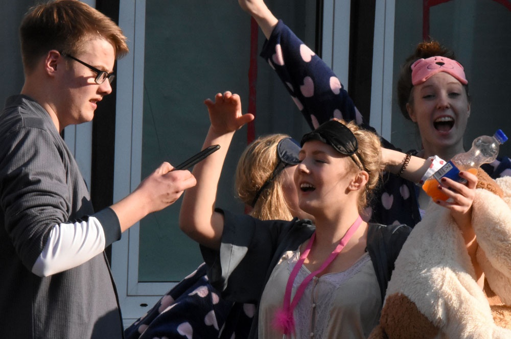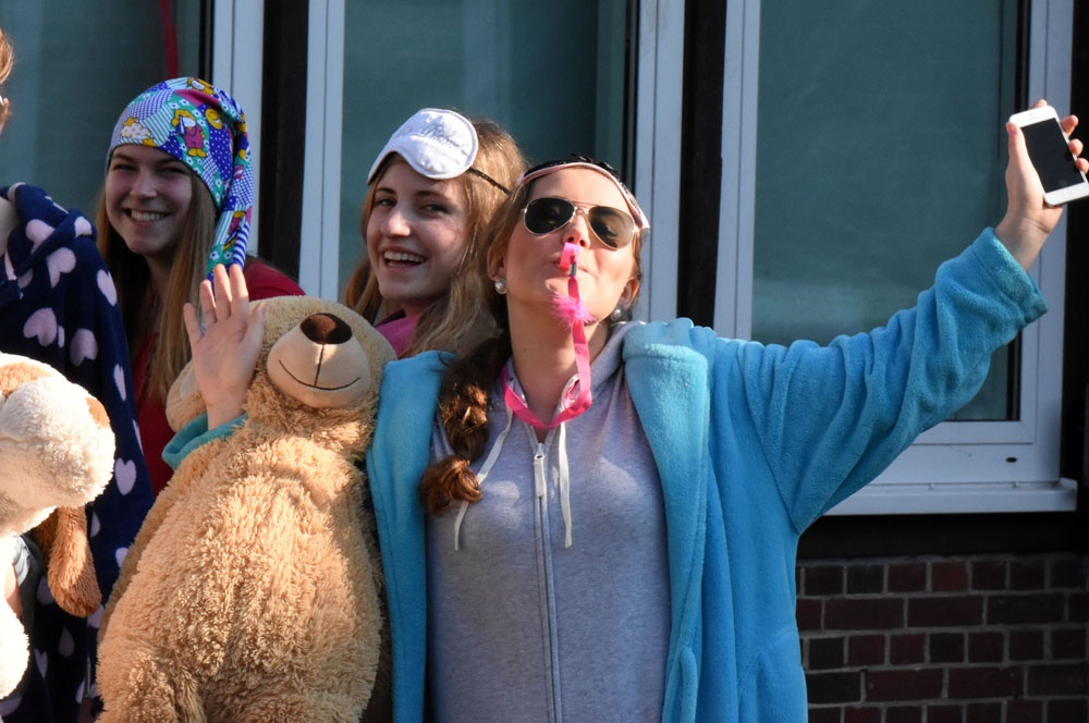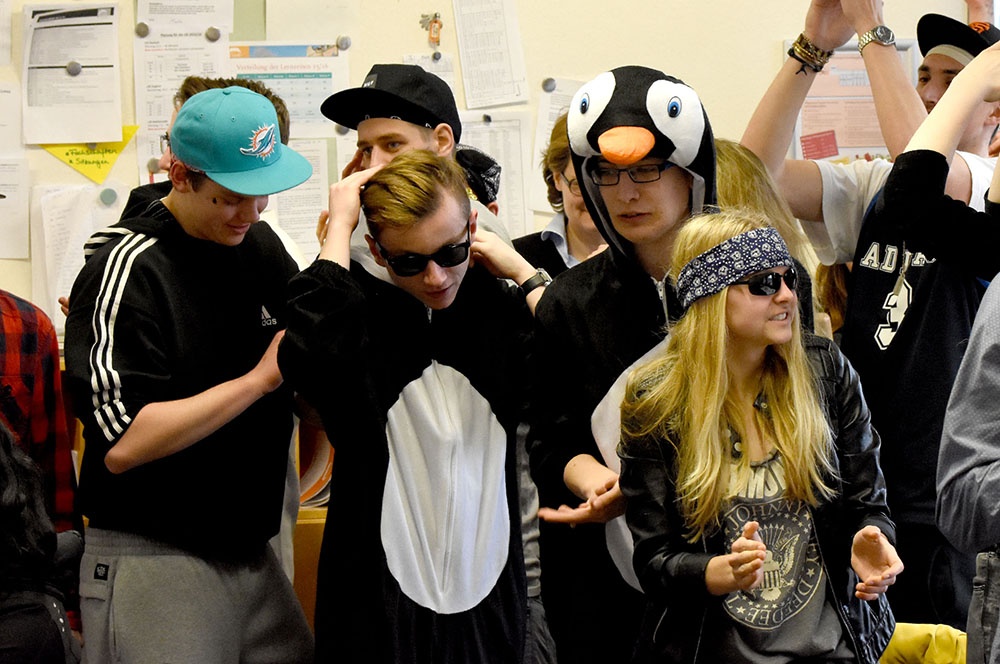 Wie schon in den letzten Jahren möchten unsere Abiturientinnen und Abiturienten vor den Prüfungen mit unterschiedlichen Outfits für Aufsehen sorgen.