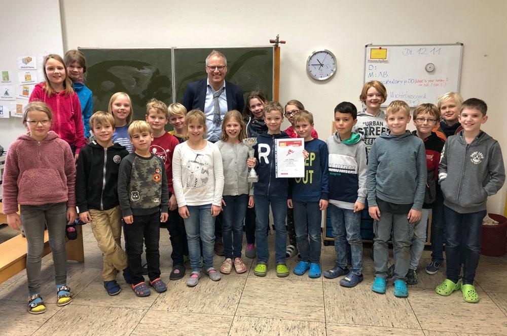 Waldlauf-Organisator Patrik Thelen war daher zur Everword-Grundschule nach Freckenhorst gefahren, um Leo persönlich zu gratulieren und mit Pokal, Urkunde und einem Buchpreis auszuzeichnen. Seine Klassenkameraden und -kameradinnen freuten sich ausgelassen mit ihm! Herzlichen Glückwunsch!"
