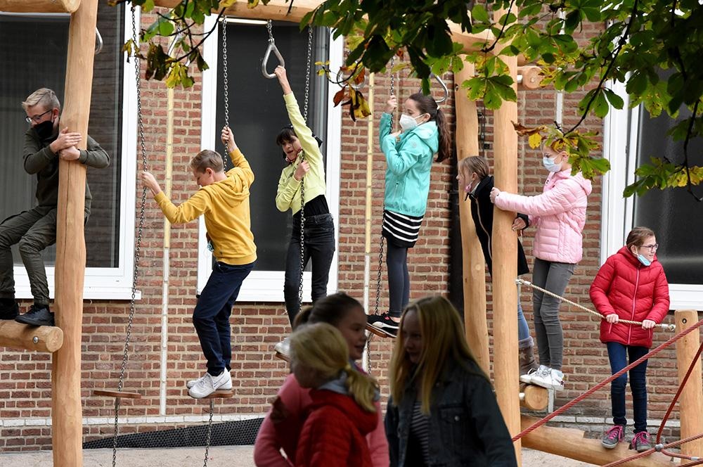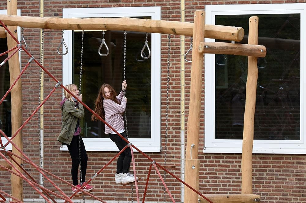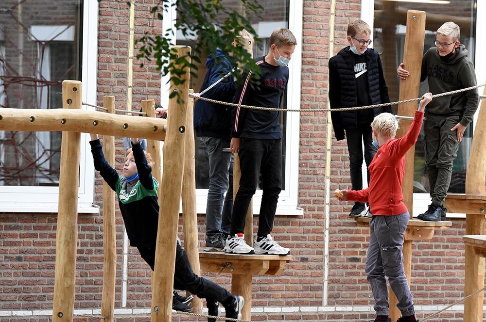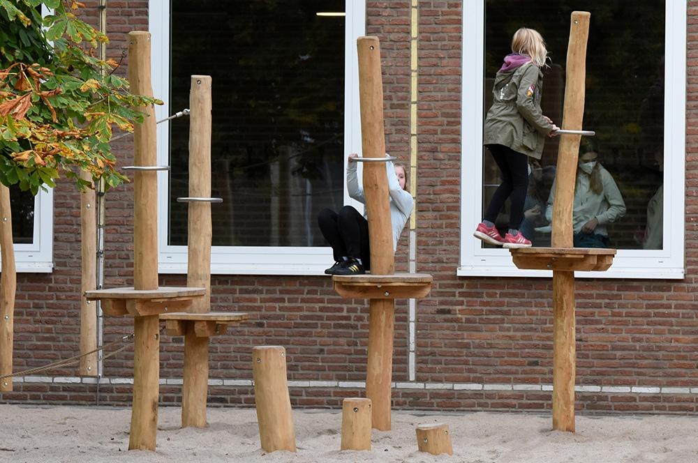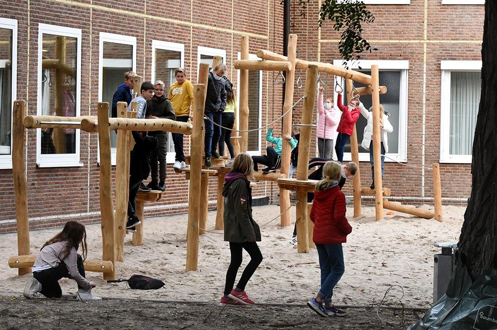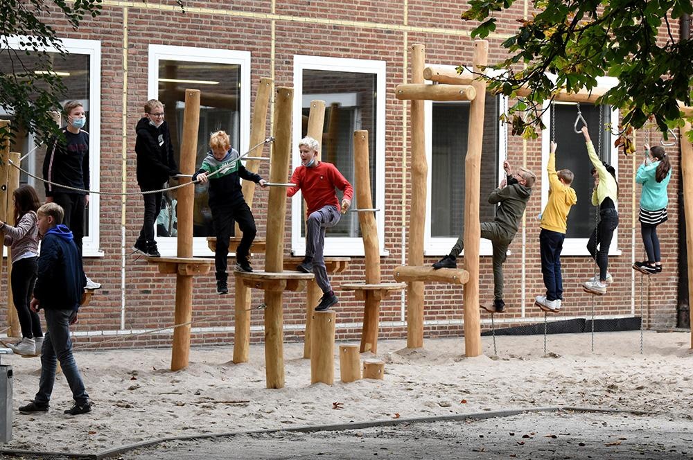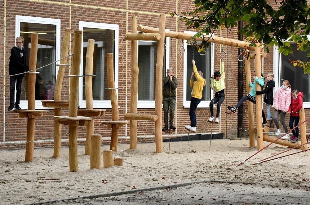 Das Ergebnis kann sich sehen lassen: Ein markiertes Fußballfeld, Tischtennisplatten, eine Kletterpyramide, Reckstangen, eine Schaukelanlage und nun der Blancier- und Kletterparcours. Einer bewegten Pause steht nun nichts mehr im Wege.