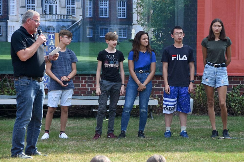 Im Anschluss begrüßte der Schulleiter Michael Bertels nicht nur zahlreiche neue Schülerinnen und Schüler, sondern hieß auch Sandra Goda und Dr. Philipp Seidel willkommen, die das Kollegium in den Fächern Erdkunde und Französisch bzw. Chemie und Physik unterstützen werden.