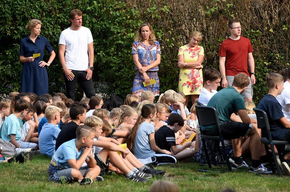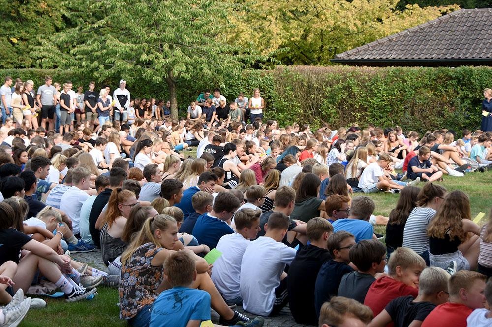 Im Ausklang dieser Schuljahreseröffnung konnten die Schülerinnen und Schüler sich über die wichtigsten Ferienerlebnisse und -ereignisse noch bei einer Apfelschorle austauschen, bevor nach der 2. großen Pause dann der Stundenplan in Kraft trat und damit die Sommerferien endgültig vorbei waren.