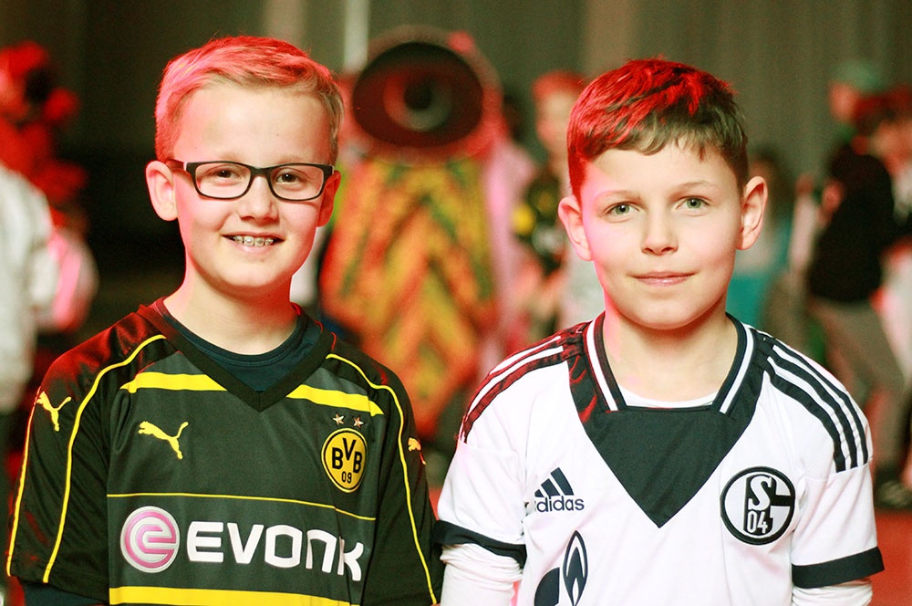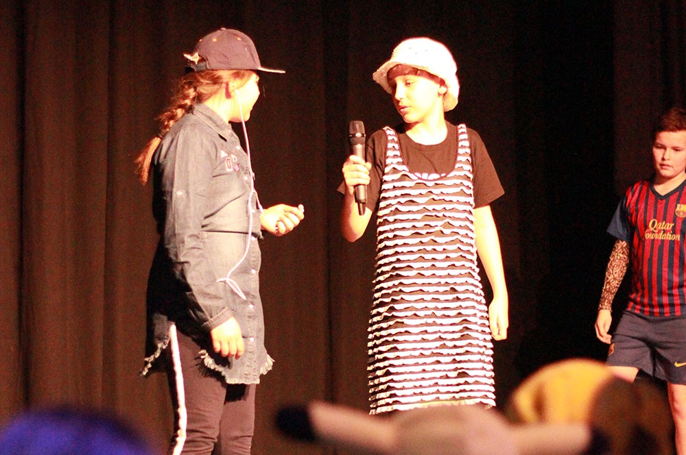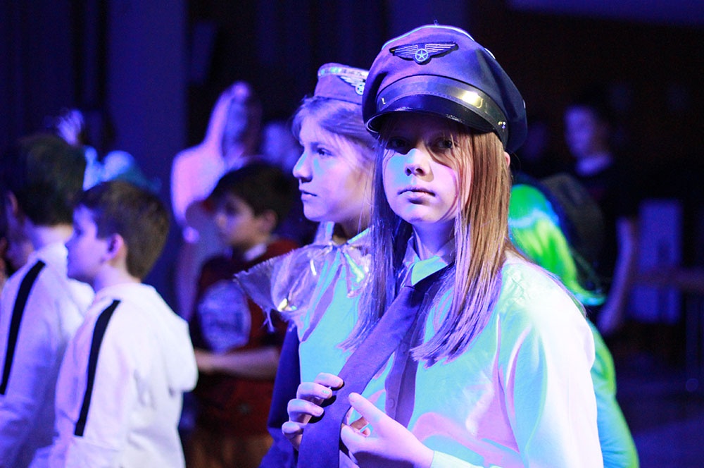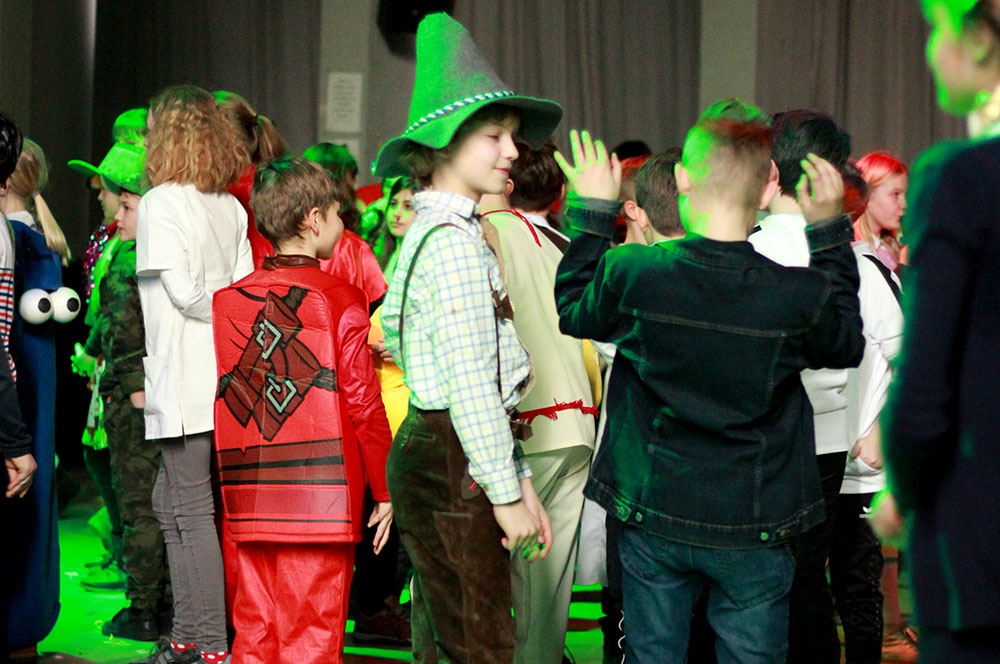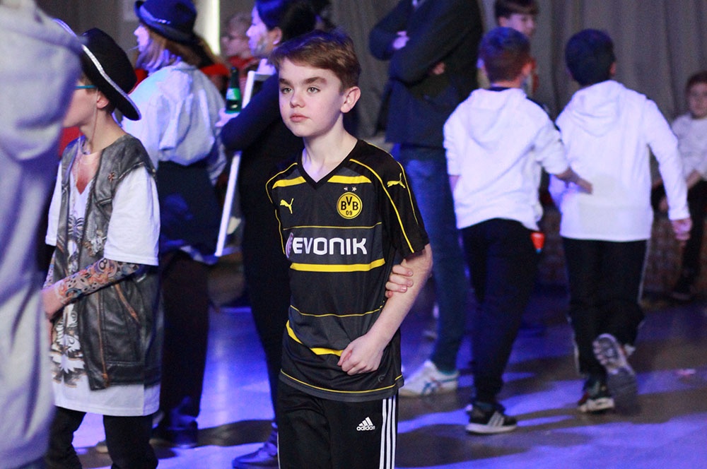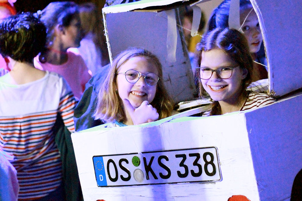 Wer am Donnerstag in den Nachmittagsstunden in die Aula schaute, der staunte nicht schlecht: Es tanzten nicht nur Bären, Einhörner und Mitglieder der Sesamstraße, nein, auch Indianer, Cowboys und allerlei Ganoven, Hexen, Omas und Opas, sowie Hippies hatten sich dort auf Einladung der Klassenpaten eingefunden. Der Fantasie waren keine Grenzen gesetzt. Um die Stimmung anzuheizen, hatten die sechsten Klassen verschiedene Musikbeiträge, Tänze und Spiele vorbereitet, die während der Party präsentiert wurden. Die Klassenpaten führten durch das Programm und immer wieder wurden die zuschauenden Schülerinnen und Schüler motiviert, bei Animationstänzen mitzumachen und sich den Polonaisen anzuschließen. Es herrschte eine tolle und ausgelassene Stimmung. Die Spannung stieg noch weiter, als es darum ging, wer das tollste Kostüm hat. Die Verkleidungen, die den Paten als besonders originell aufgefallen waren, wurden den Mitschülern präsentiert.