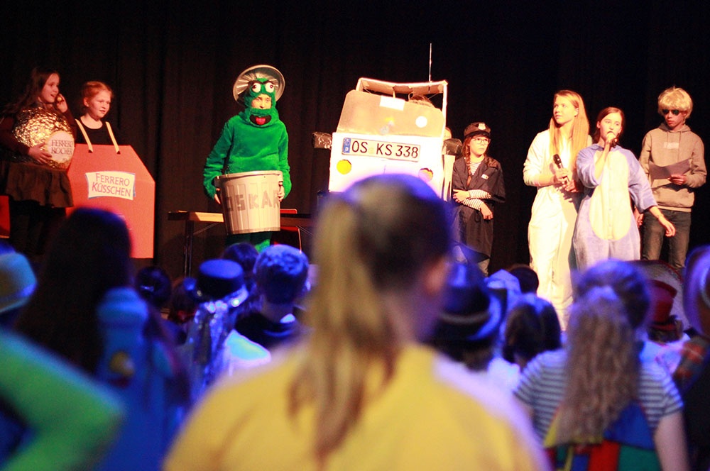 Nach großem Applaus standen die Sieger des diesjährigen Unterstufenkarnevals fest: Platz 1 ging an Ferroro Rocher und Ferrero Küsschen, Platz 2 konnte Oskar in der Tonne für sich gewinnen und das Auto fuhr auf Platz 3.