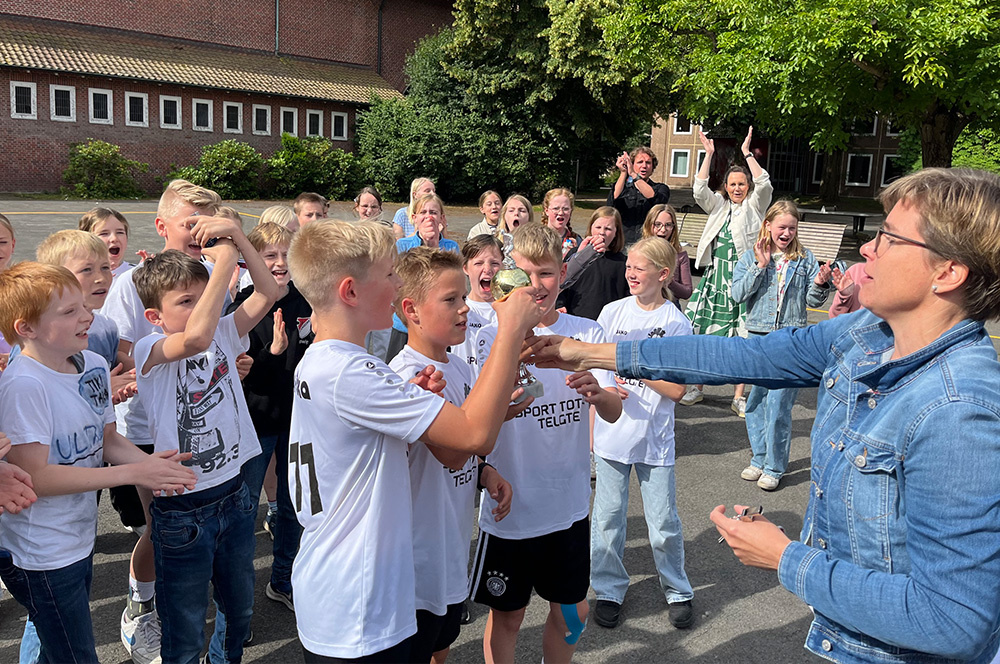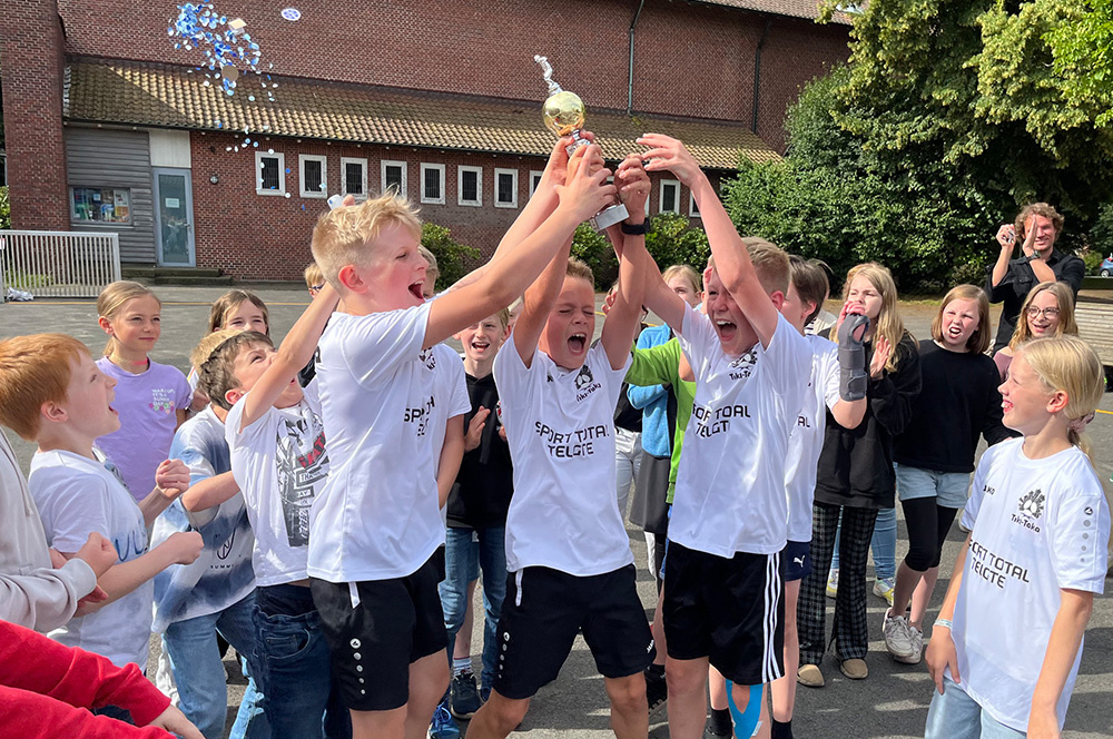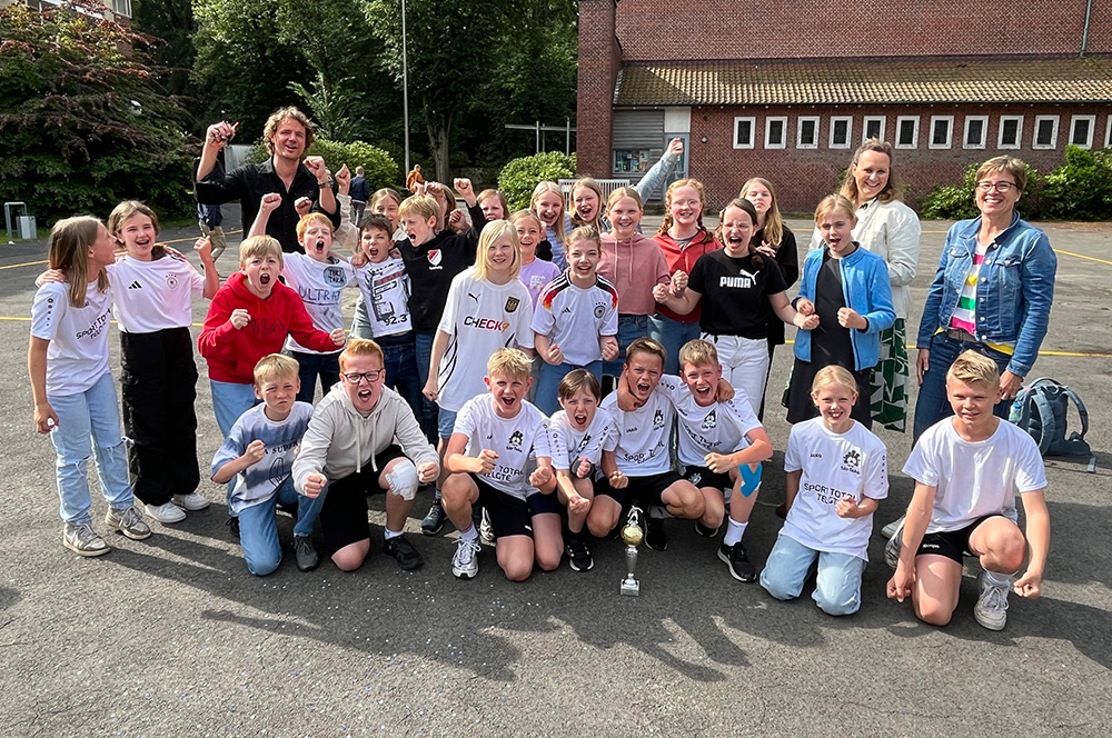Tolle Stimmung, spektakuläre Tore und ein dramatisches Finish! Letztlich knapp mit 4:2 hat sich die 5a von Frau Uhrlau und Herr Hergemöller im Finale der Pausenliga gegen die 6b durchgesetzt!