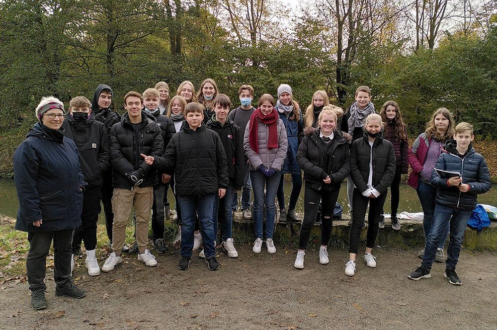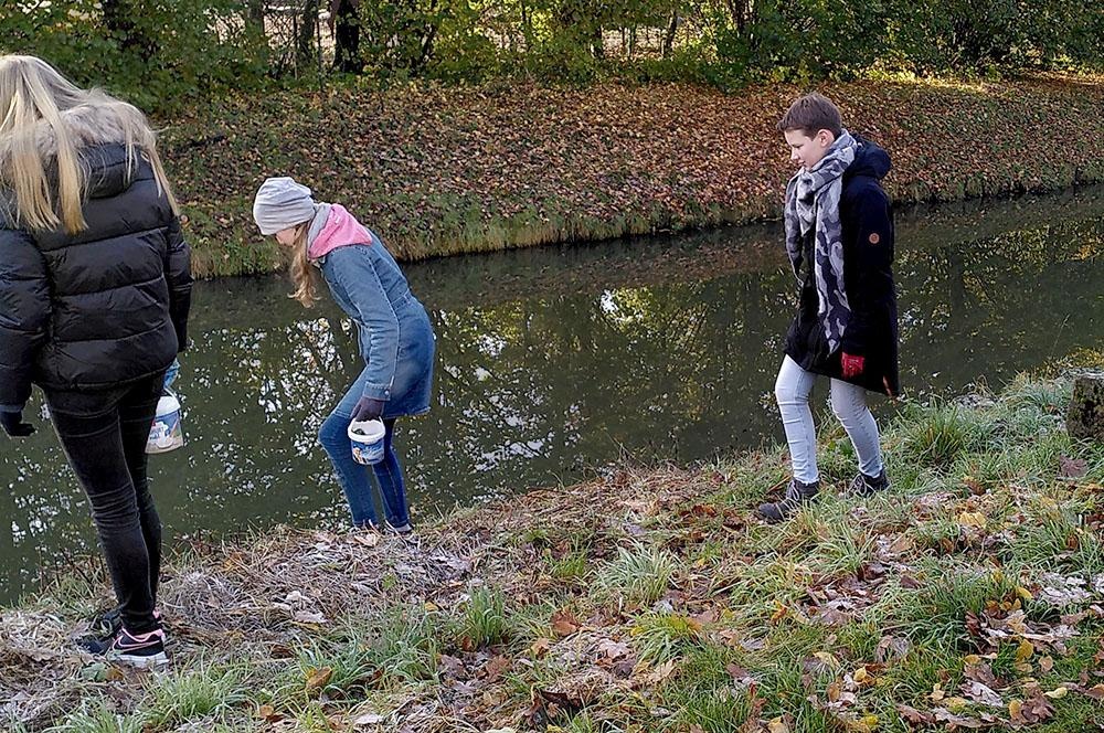 Die NW-Kurse im Jahrgang 9 haben am 11.11.21 an der Aktion ‚Plastic Pirates - Go Europe’ teilgenommen. Als Tatorte haben sie zum einen die Bever im Bereich des Schulzentrums und zum anderen etwas weiter oberhalb im Bereich der Brücke mit dem Kunstwerk (springender Mensch) gewählt.