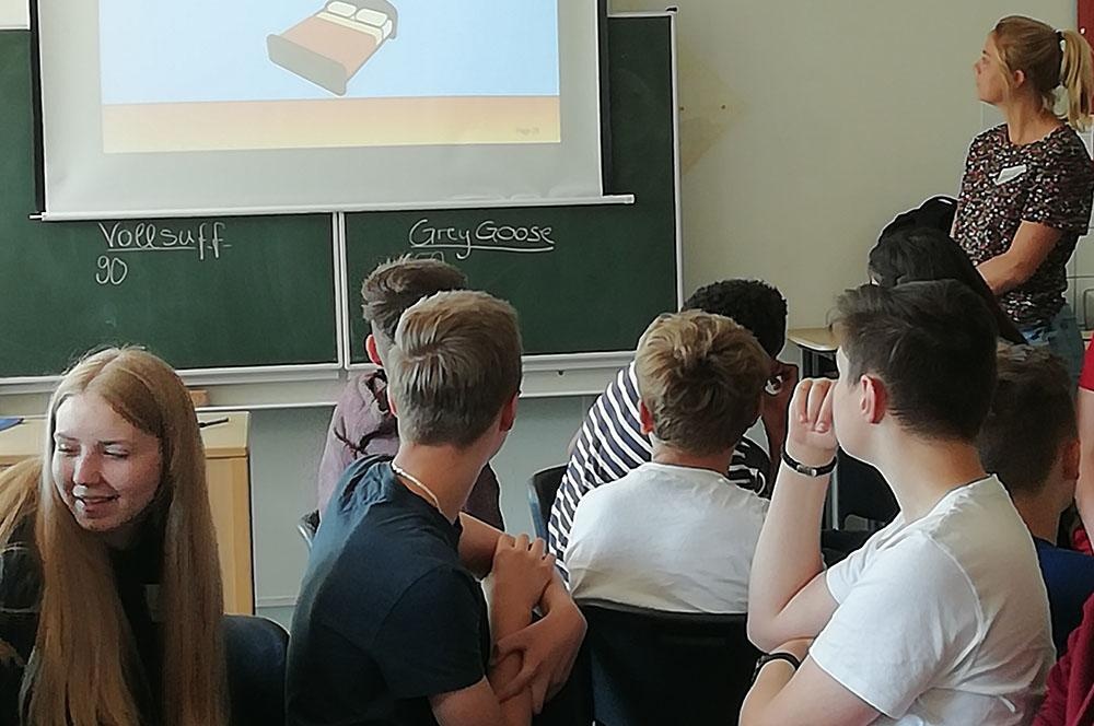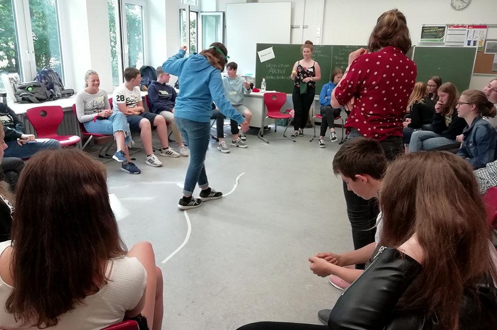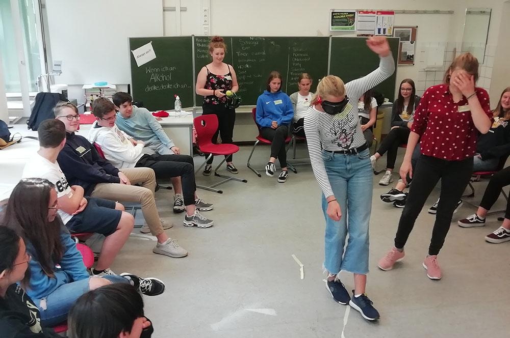 Im Rahmen der Präventionswoche „Sucht“ an der Loburg nahmen die 8. Klassen am Mittwoch und Donnerstag (3. und 4. Juli) teil am „Infococktail Alkohol“ und schulten ihr Wissen rund um das Thema Alkohol. Die motivierten Referentinnen (Studentinnen des Fachbereiches soziale Arbeit bzw. Sozialpädagogik), gestellt vom Amt für Kinder, Jugendliche und Familien des Kreises Warendorf, erarbeiteten innerhalb von 4 Unterrichtsstunden mit den Schülerinnen und Schülern anhand eines abwechslungsreichen und jugendorientierten Programms eine gesunde Einstellung zum Thema Alkoholkonsum und Koma-Trinken. Dabei gab es neben vielen klaren Informationen vor allem auch spielerische Einheiten wie Rollenspiele oder eine sehr eindrückliche Übung mit den sogenannten „Alkoholbrillen“, die auf amüsante Weise die Folgen exzessiven Konsums erlebbar machte, sodass vor allem der eigene Umgang mit Alkohol im Mittelpunkt stand. Abgerundet wurde die Präventionsveranstaltung mit einem abwechslungsreichen Quiz und einem insgesamt sehr positiven Feedback der beteiligten Schülerinnen und Schüler sowie Hr. Flothkötter als schulischer Suchtbeauftragter.