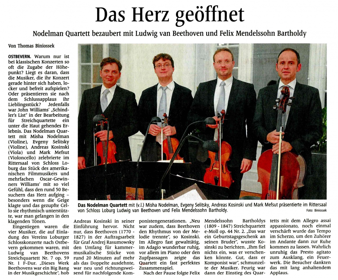 Nodelmann Quartett bezaubert mit Ludwig van Beethoven und Felix Mendelsohn Bartholdy