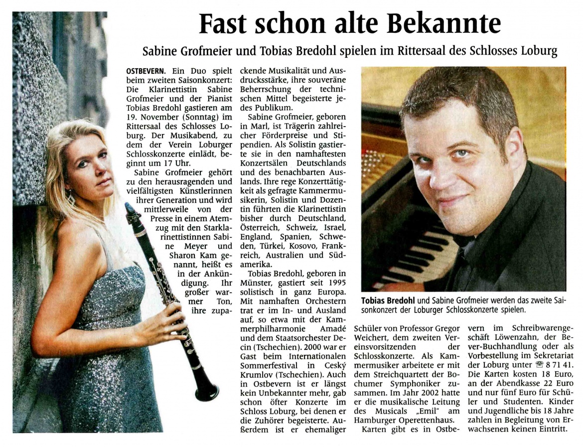 Sabine Grofmeier und Tobias Bredohl spielen im Rittersaal des Schlosses Loburg