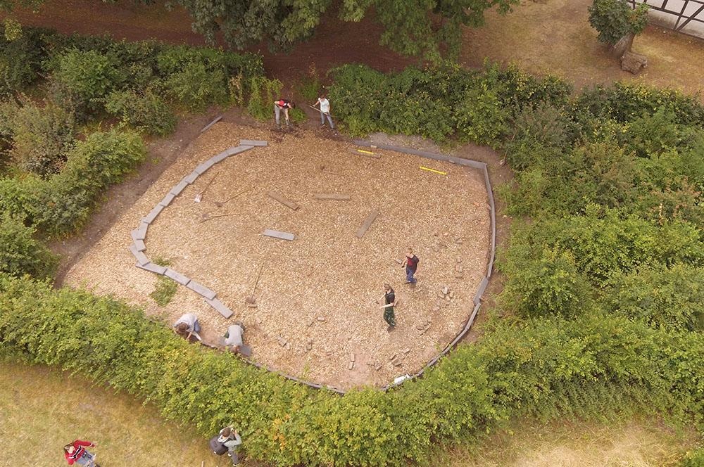 Ein Sinnesgarten soll an unserer Schule entstehen. Den Sinnesgarten im Blick können bei diesem Projekt dreidimensionale Werke (auch begeh- oder „besitz“-bar) entstehen, die nicht nur mit den Augen erfahrbar sind, sondern auch ertastet, gehört (oder vielleicht sogar gerochen) werden können. Verarbeitet werden natürliche Materialien und Fundstücke, die vor Ort gefunden werden. Diese werden dann angeordnet und zusammenmontiert. Nach einer ersten Einführung und Besprechung, der Besichtigung des Sinnesgartens und einer Ideenentwicklungsphase wird man auf die Suche nach geeigneten Materialien und Fundstücken gehen, die sich zum Bauen unserer Ideen eignen.