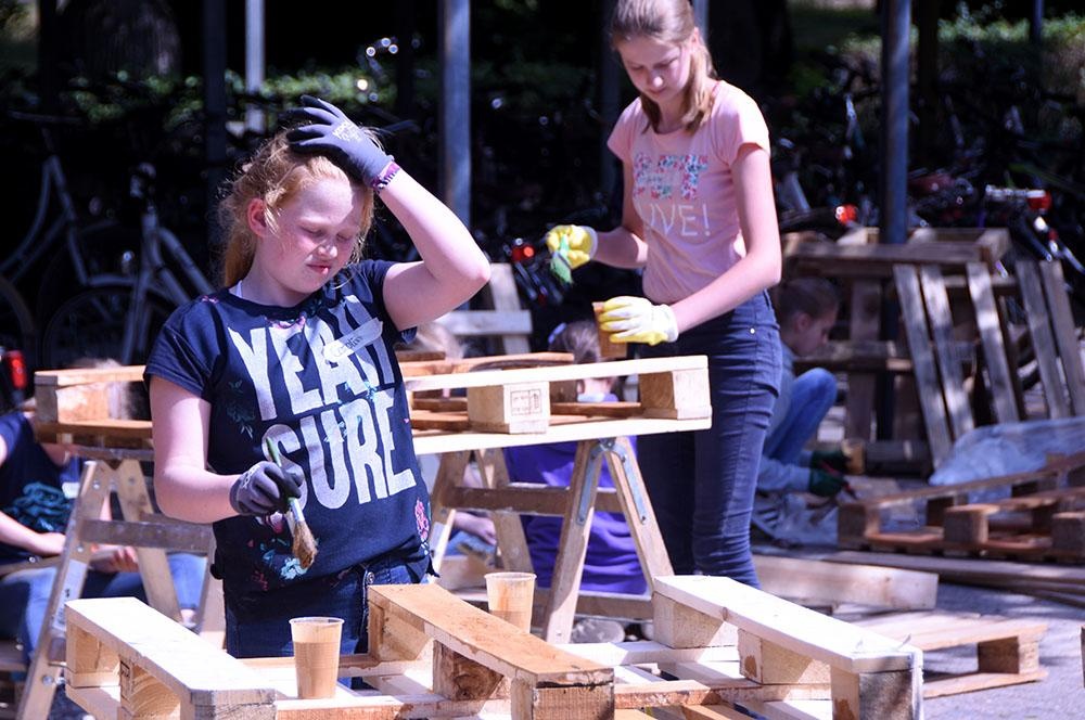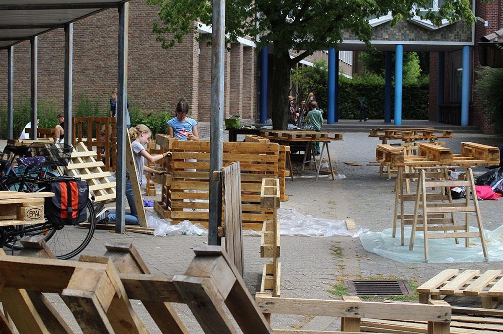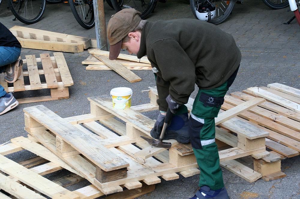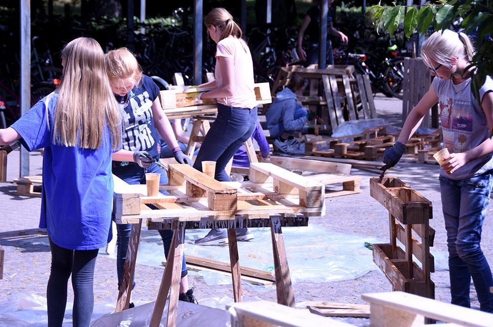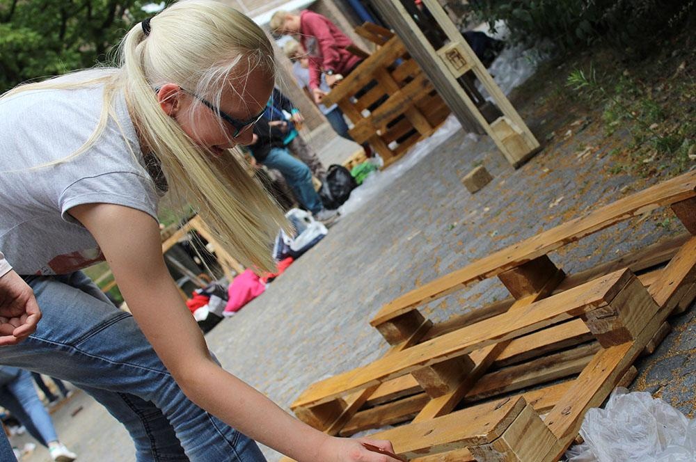 Upcycling-Möbel aus gebrauchten Paletten sind nachhaltig und voll im Trend. Das Tolle an einem Paletten-Kräuterbeet ist, dass man es ganz einfach selbst bauen und bepflanzen kann. So kann man Schnittlauch, Minze, Basilikum (oder was das Kräuterherz begehrt) platzsparend und stylisch auf der heimischen Terrasse oder dem Balkon gedeihen lassen. Mit den Schülern wird gemeinsam eine Kräuterpalette gebastelt, die man dann zuhause bepflanzt. Zu den auszuführenden Arbeiten gehört z.B. das Abschleifen und Lackieren der Paletten sowie das Anbringen von Teichfolie im Inneren der Pflanzkammern, damit das Palettenholz nicht faulig wird.