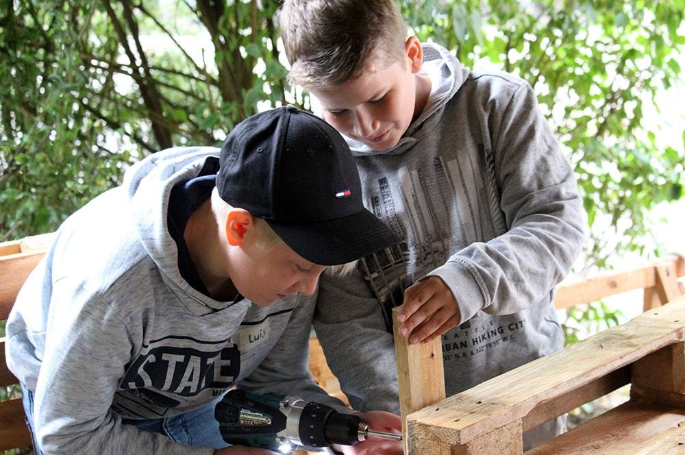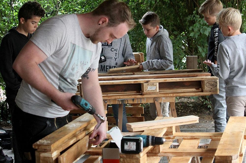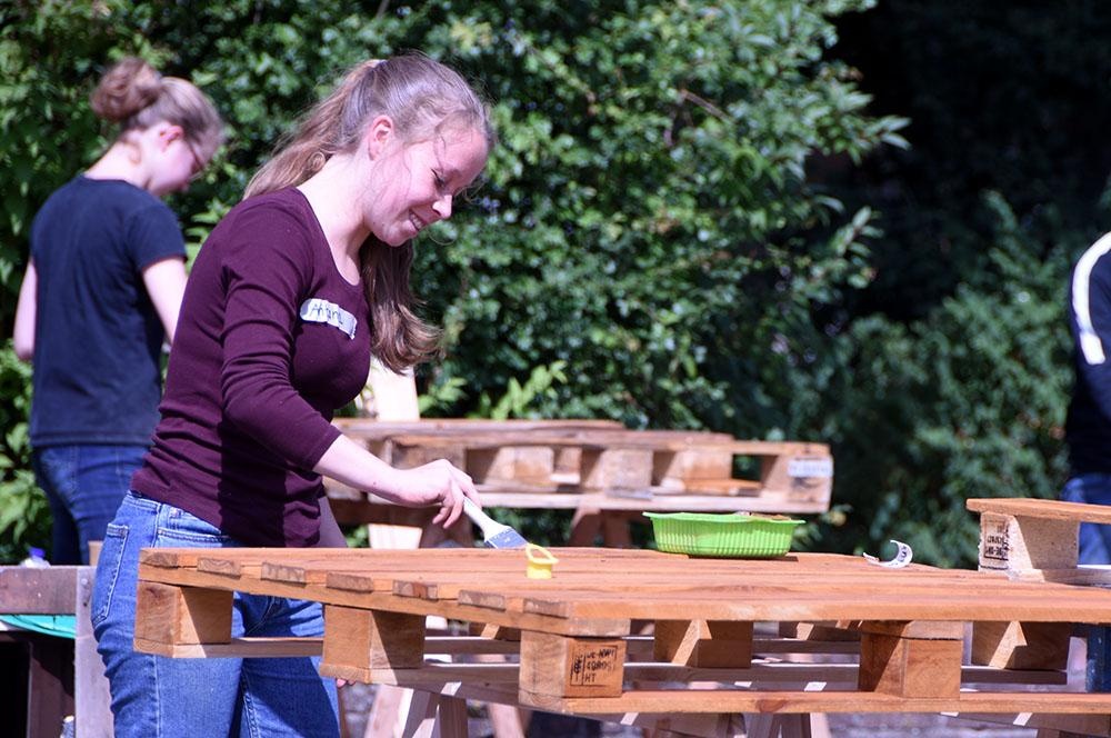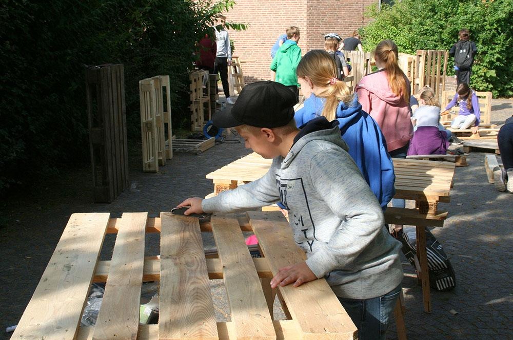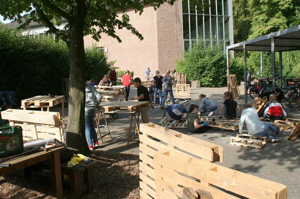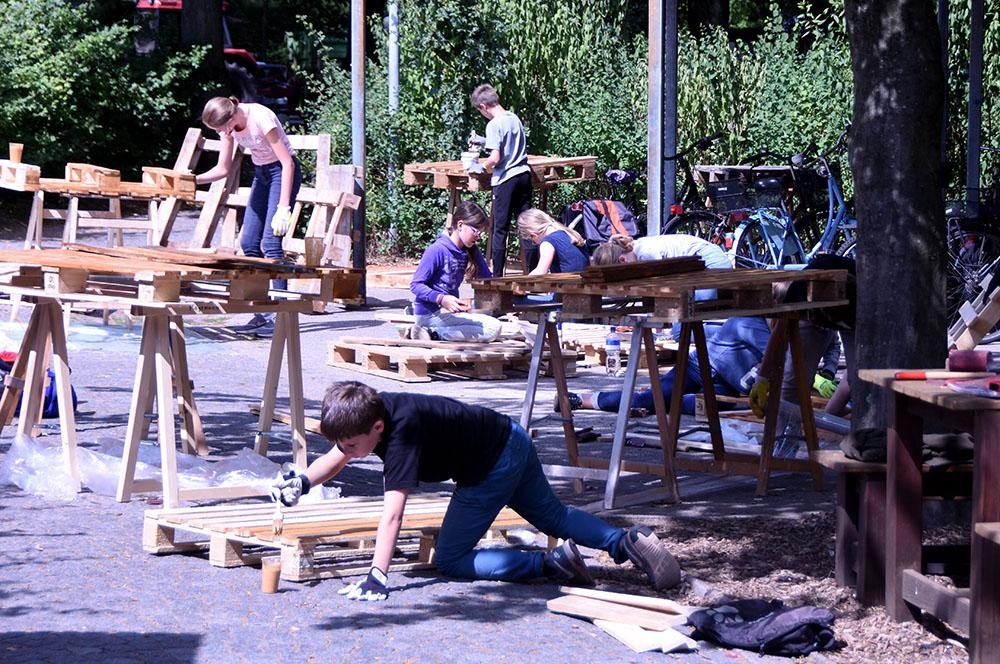 Upcycling-Möbel aus gebrauchten Paletten sind nachhaltig und voll im Trend. Das Tolle an einem Paletten-Kräuterbeet ist, dass man es ganz einfach selbst bauen und bepflanzen kann. So kann man Schnittlauch, Minze, Basilikum (oder was das Kräuterherz begehrt) platzsparend und stylisch auf der heimischen Terrasse oder dem Balkon gedeihen lassen. Mit den Schülern wird gemeinsam eine Kräuterpalette gebastelt, die man dann zuhause bepflanzt. Zu den auszuführenden Arbeiten gehört z.B. das Abschleifen und Lackieren der Paletten sowie das Anbringen von Teichfolie im Inneren der Pflanzkammern, damit das Palettenholz nicht faulig wird.