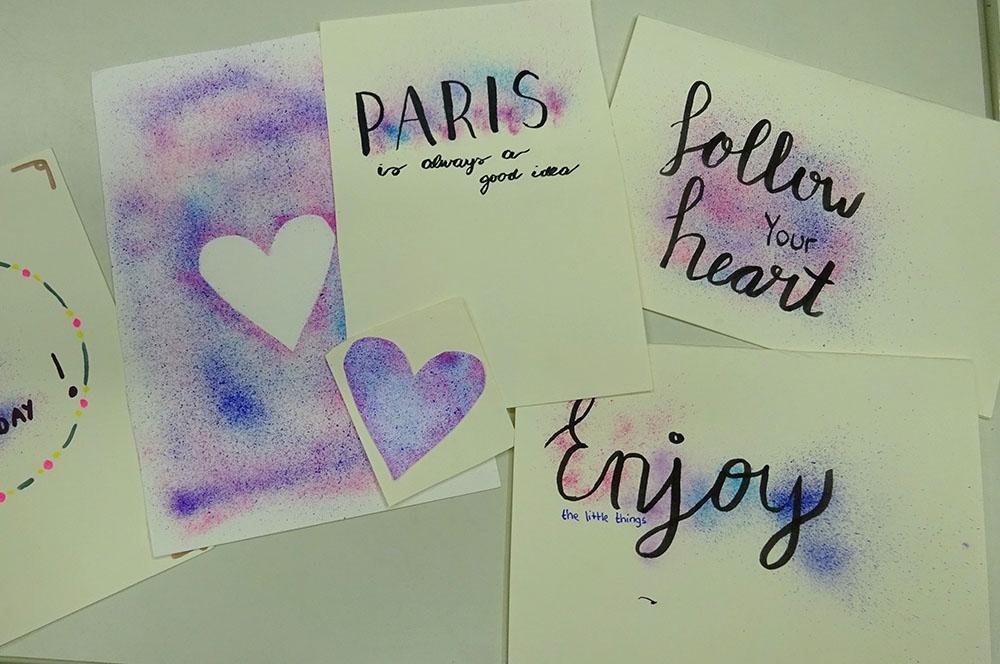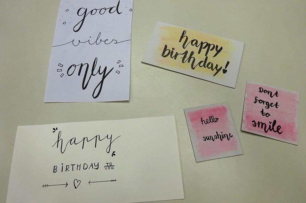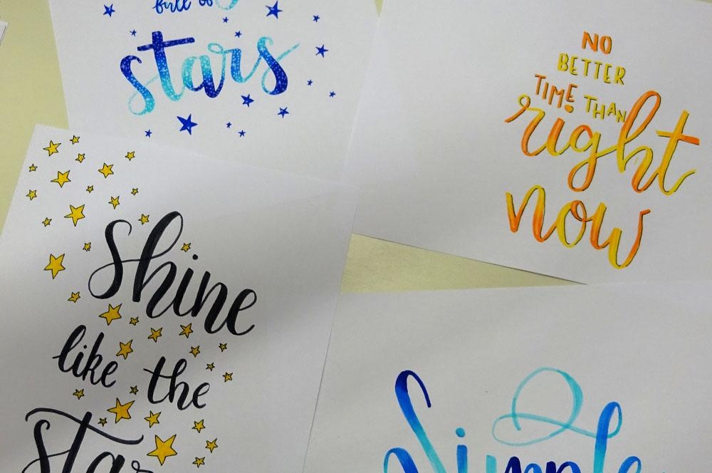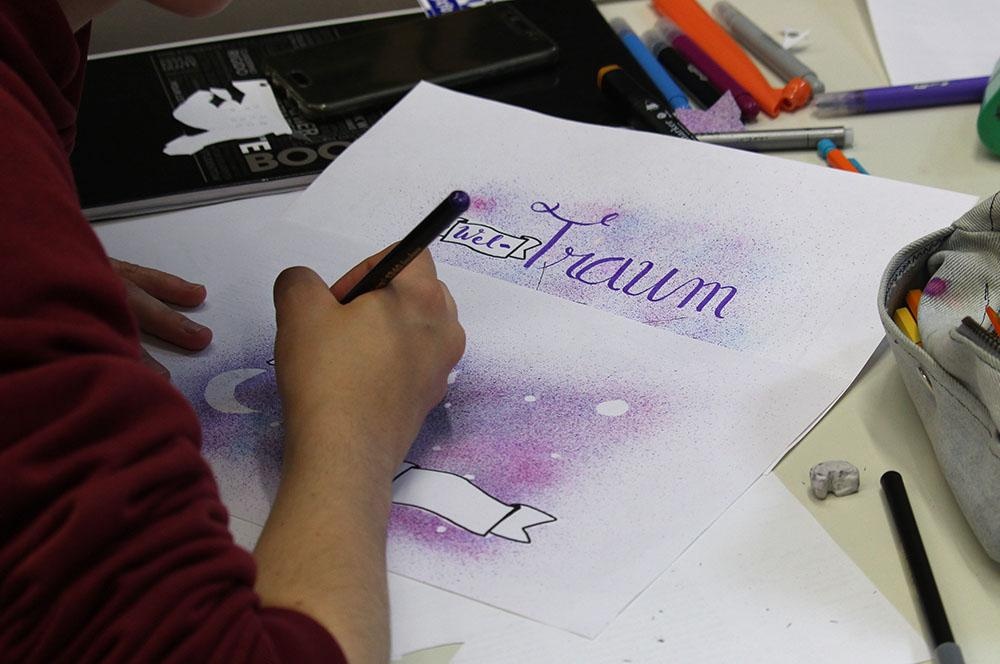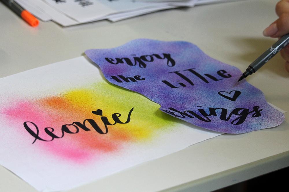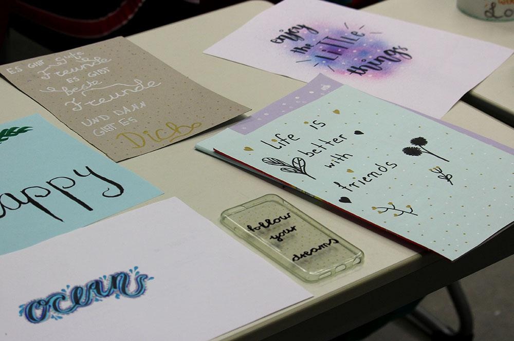 In ruhiger und entspannter Atmosphäre wird moderne Kalligraphie (HandLettering) geüben, um verschiedene Gegenstände aufzuwerten und in kleine Kunstwerke zu verwandeln. Zum Üben wird ausschließlich Schmierpapier benutzt, das sonst auf dem Müll landen würde. Zudem werden einige Objekte mit hübsch „geletterten“ Schriften upgecyclet, z.B. alte Marmeladengläser mithilfe von schöner Schrift in tolle Vorratsgefäße oder Windlichter verwandeln oder aus Altpapier individuelle Bullet Journals oder schöne Karten gestalten.