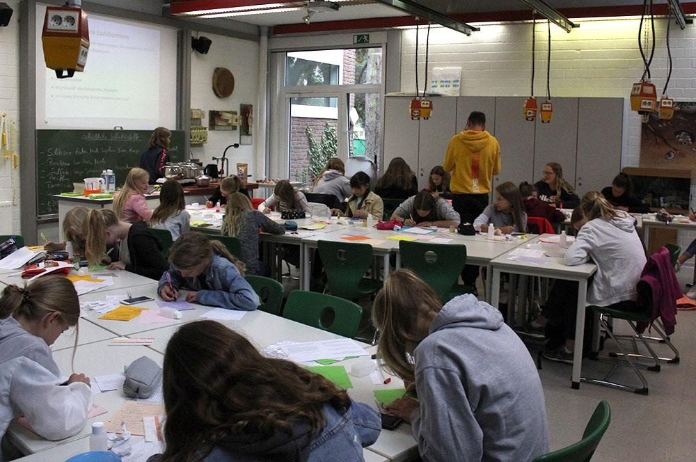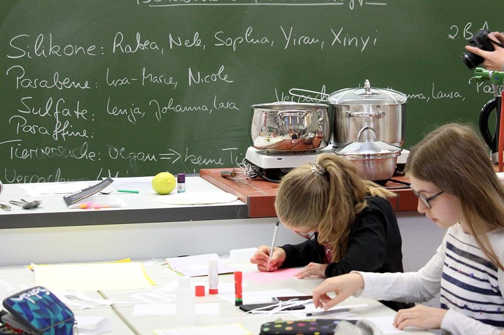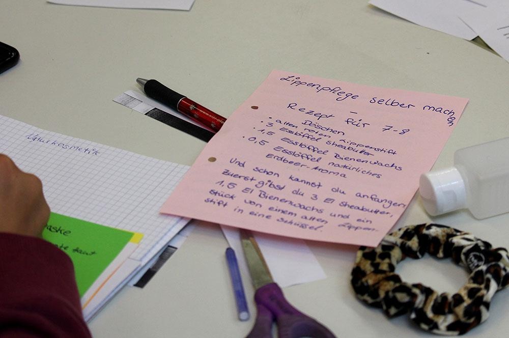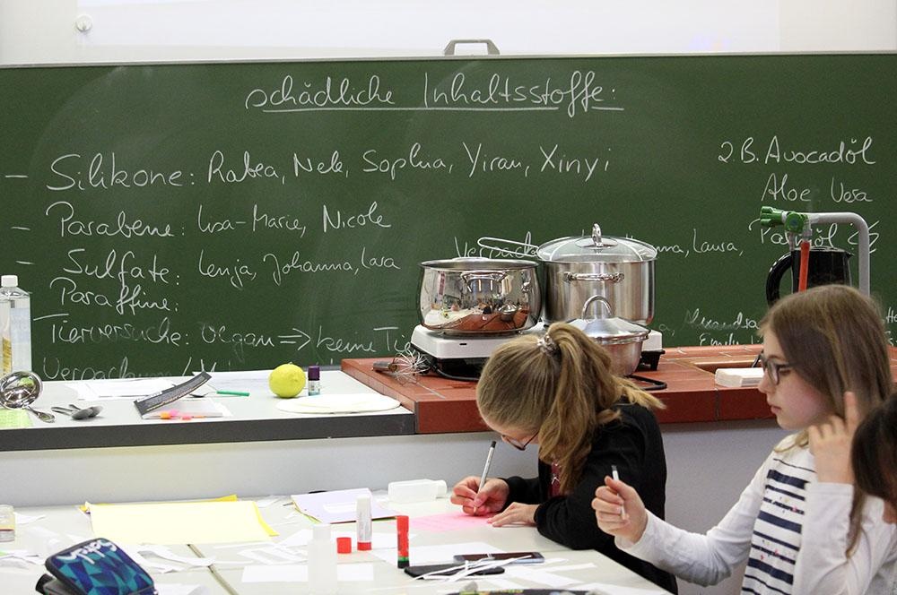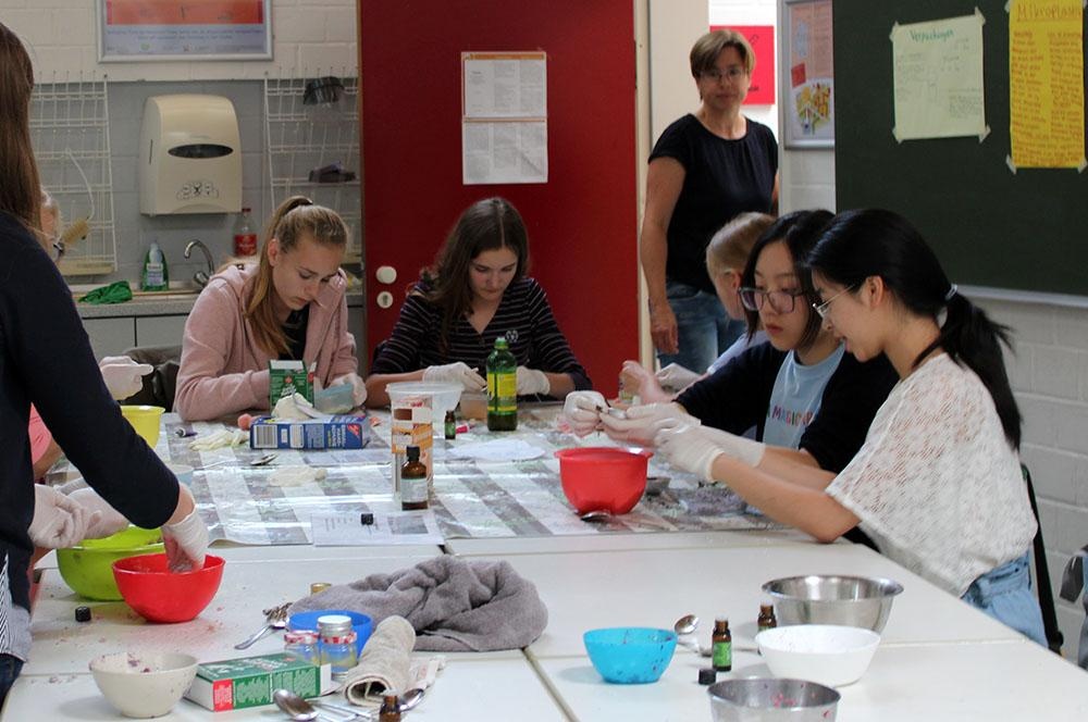 Die Schülerinnen und Schüler werden mit einem Code-Scanner die Inhaltsstoffe in Duschgel und Co. checken und überlegen, welche Funktion sie erfüllen. Dann werden wir aus natürlichen Rohstoffen eigene Pflegeprodukte wie Lippenbalsam, Handcreme, Badebomben etc. herstellen – nachhaltig, ohne Chemie und Mikroplastik. Die Produkte dürfen mitgenommen werden. Die Rezepte werden in einem eigenen Rezeptbuch gesammelt und gestaltet.