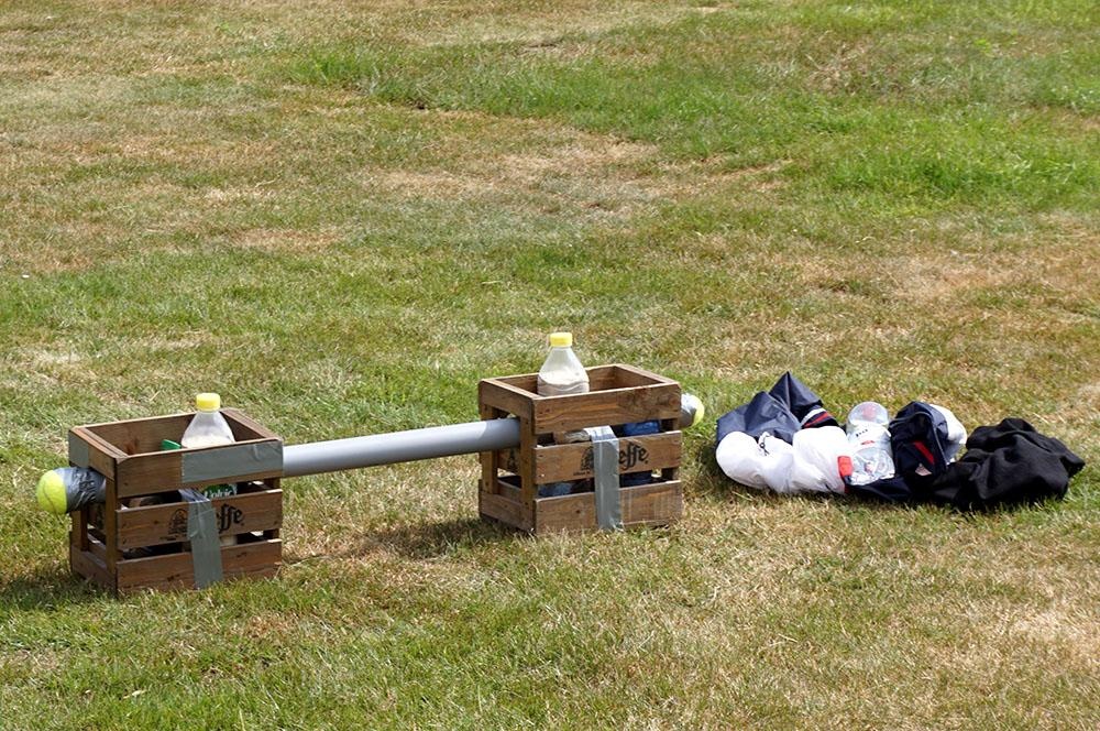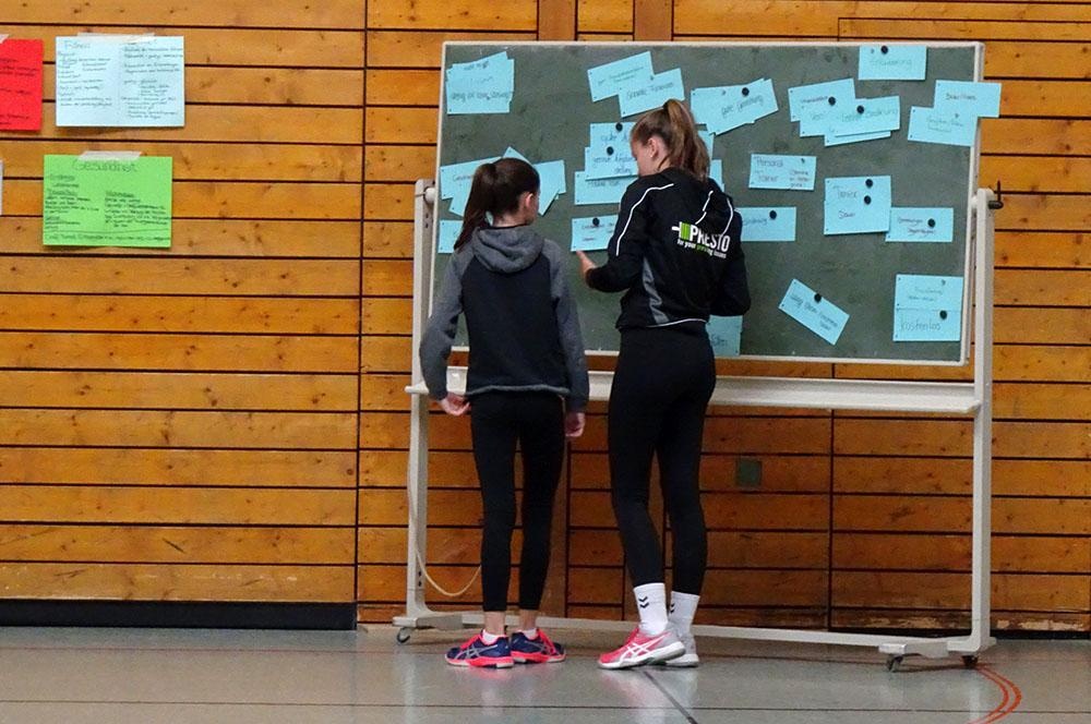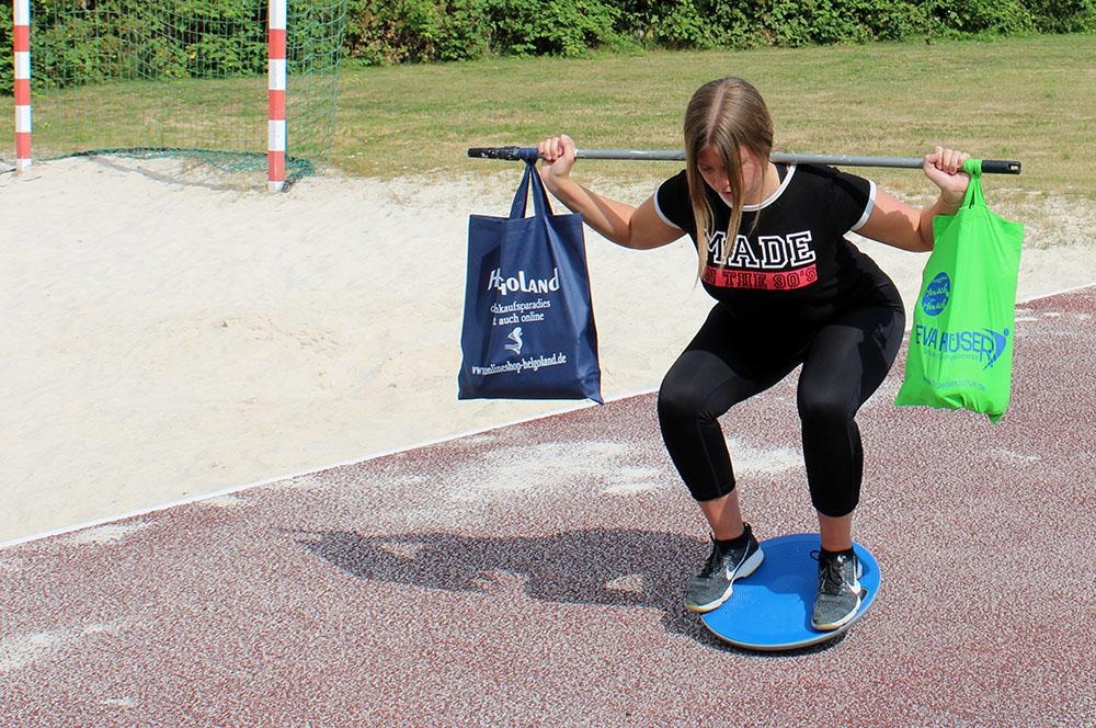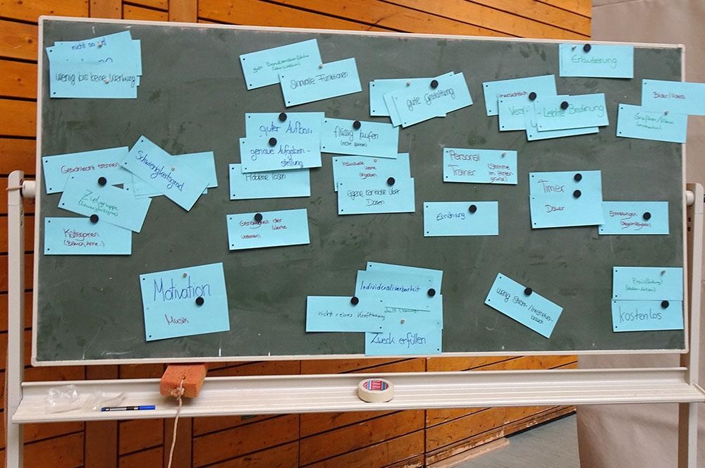 Es werden aus Alltagsmaterialien Sportgeräte (Hanteln aus Flaschen, Wackelbretter etc.) entwickelt und selbst ausgetestet.
