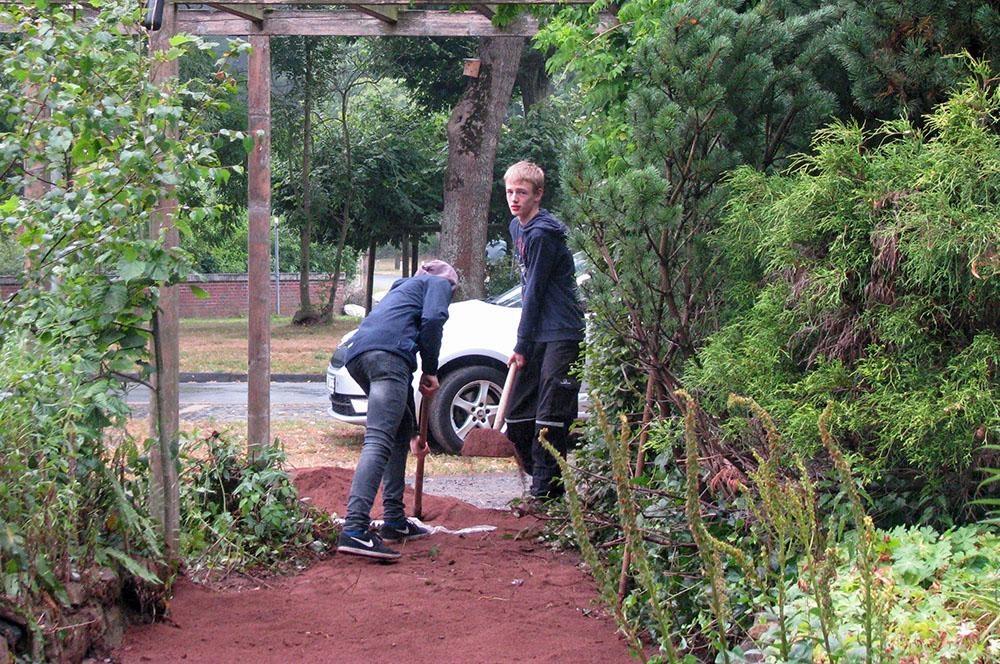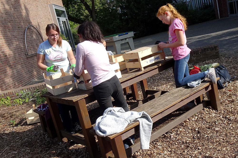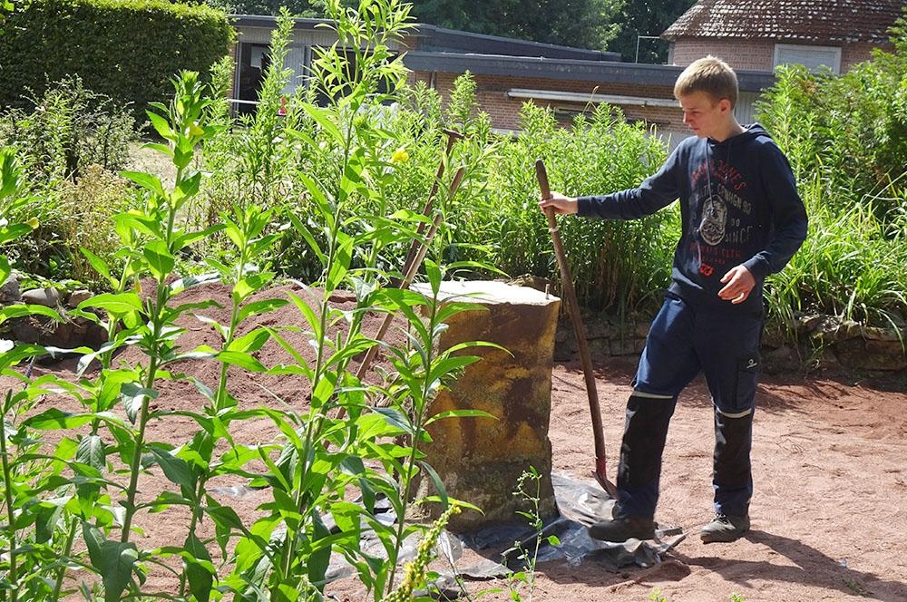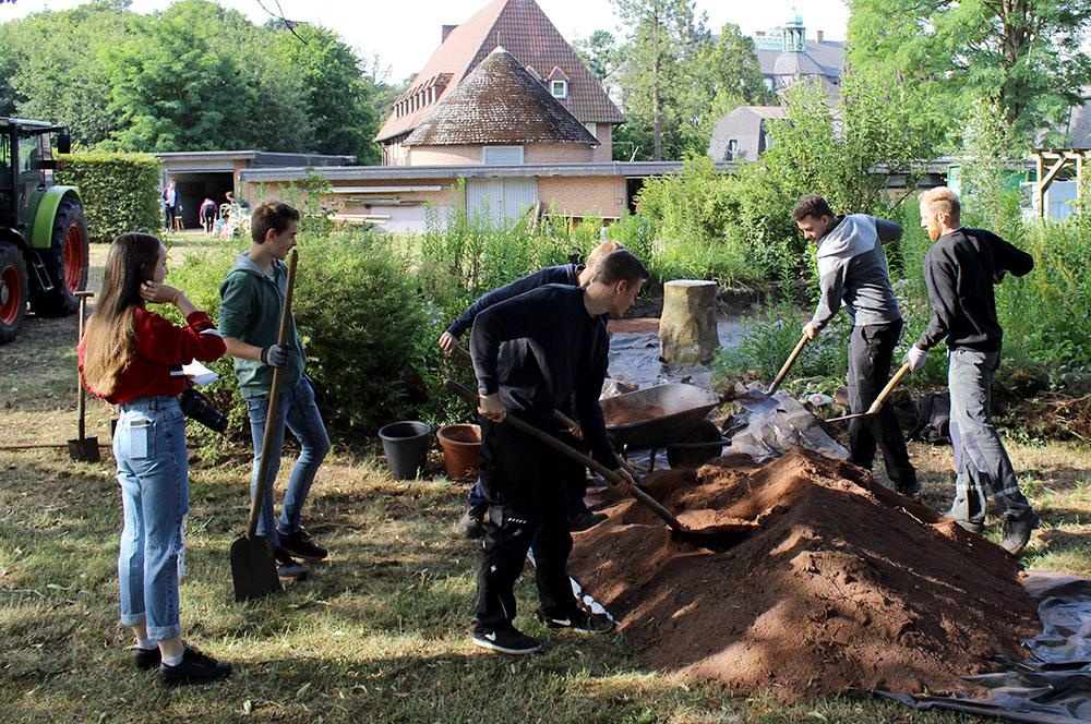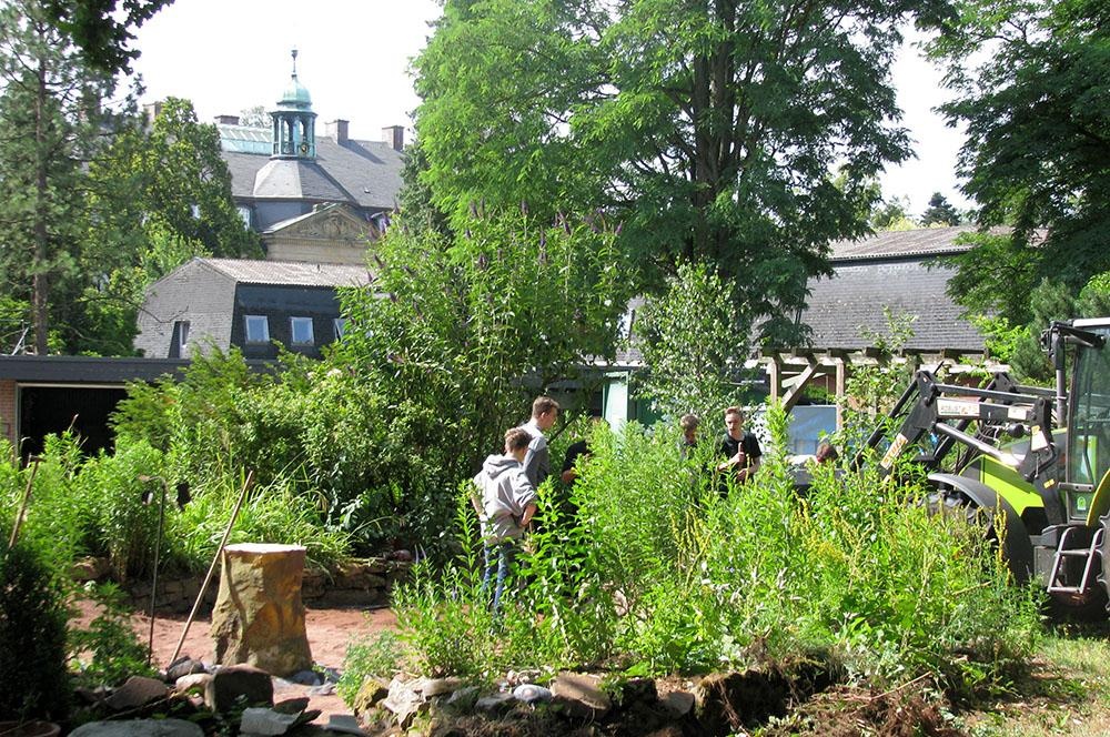 Im Januar haben Schüler, Eltern und Lehrer begonnen, die Flächen um die Turnhalle für ein großes Biologie-Projekt umzugestalten. Wir haben bereits viel geschafft. Während der Projekttage wollen wir unsere Arbeit fortsetzen und Materialien, ggf. mit großen Maschinen, transportieren und verschiedene Gegenstände eingraben oder umsetzen.