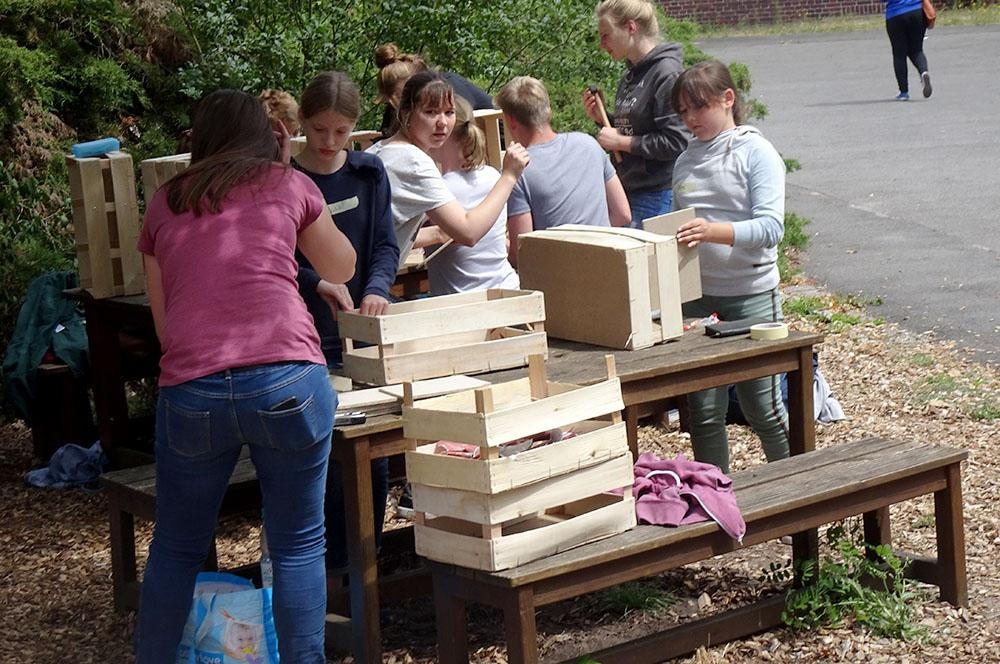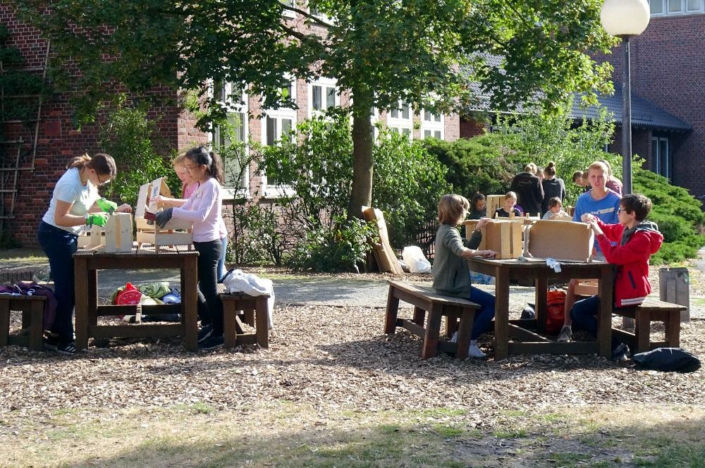 In der letzten Wochen vor den Sommerferien finden in unregelmäßigen Abständen die Projekttage statt. Zuletzt im Sommer 2019. Unter dem Motto „Schule der Zukunft – Bildung für Nachhaltigkeit“ haben wir uns mit den Themen Umwelt, Klimaschutz, Ernährung, Gesundheit, Fair-Trade, biologische Vielfalt, Upcycling und gesellschaftlichen Fragestellungen beschäftigt.