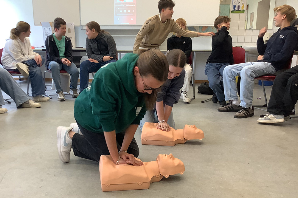 Leben retten stand am Donnerstag auf dem Programm des Projekttags zur Laienreanimation. Bei einem plötzlichen Herzstillstand muss schnell gehandelt werden. Schon nach wenigen Minuten unterbrochener Sauerstoffversorgung des Gehirns kann es zu bleibenden Hirnschäden kommen. Auch ungeübte Laien können durch bewusstes Handeln in einem solchen Notfall die Überlebenschancen deutlich steigern.