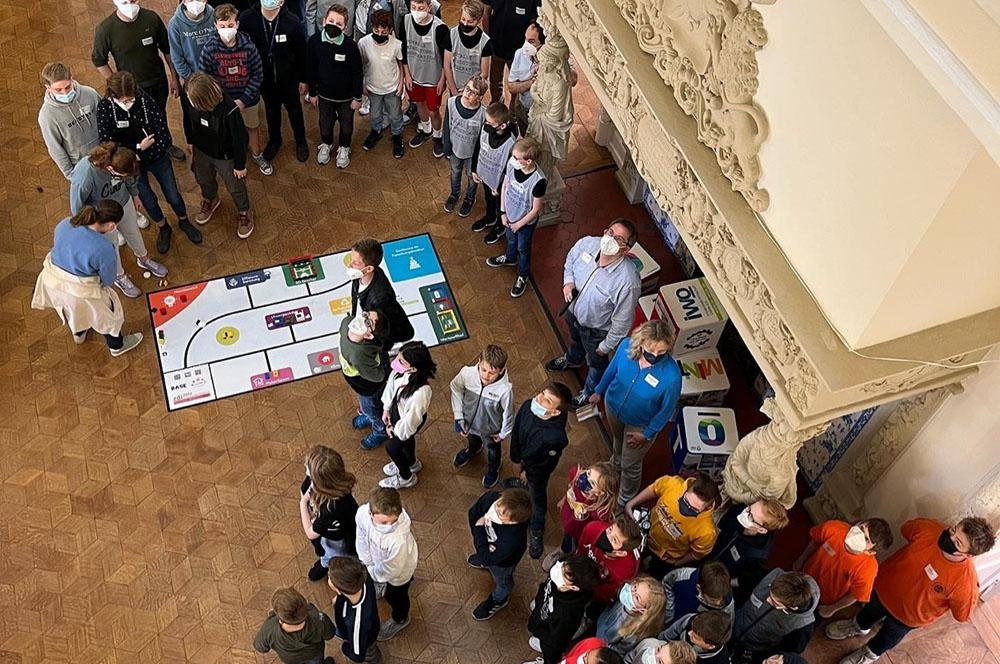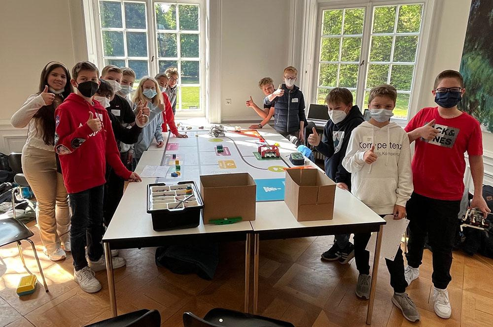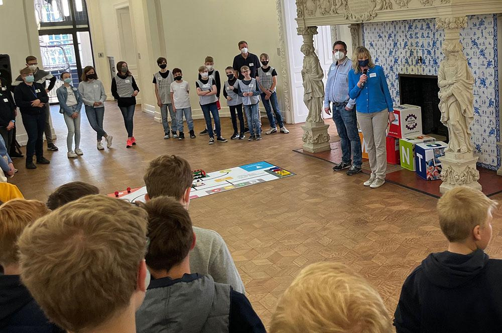 Nachhaltigkeit war das große Thema beim diesjährigen Roboterwettbewerb des ZDI im Kreis Warendorf an der Loburg. In drei Runden haben sich die von Schüler*innen der Jahrgangstufen 5 bis 9 entwickelten Roboter miteinander gemessen. So musste z.B. ein Car-sharing Auto auf seinen Platz zurückgebracht werden oder das alte Handy zum Recycling im Wertstoffhoff entsorgt werden. Gelungene Aktionen der Roboter wurden vor allem bei dem großen Team der “Lobotics” begeistert von den Mitschülern gefeiert. Leider klappte hier gerade in den ersten beiden Runden nicht alles, was sich die Schüler vorgenommen hatten.