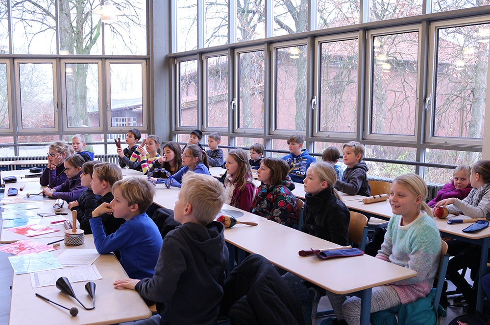 In der Aula teilte Unterstufenkoordinator Lothar Slon die Schüler in 7 „Klassen“ ein, woraufhin die Lehrer mit ihren Schülern in die unterschiedlichen Klassenräume gingen. Dort fanden jeweils zwei verschiedene Unterrichtsstunden statt: Biologie, Physik, Englisch, Mathe, Deutsch, Musik und Informatik standen auf dem Stundenplan und wurden von Loburger Lehrern spielerisch und anschaulich vermittelt. So lösten beispielsweise die Mathematikschüler Zauberquadrate und Tangrams, während in der Physik Experimente auf dem Programm standen und die Viertklässler in der Biologie die Fortbewegung der Regenwürmer näher erarbeiten und erläutern konnten.