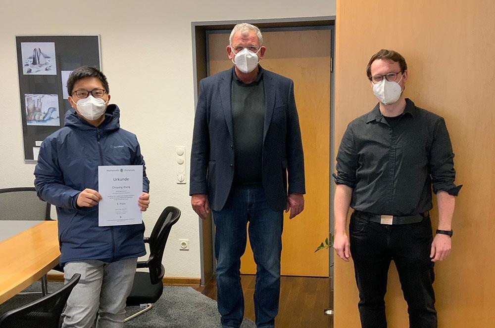 Auf eine Preisverleihung musste vom Veranstalter pandemiebedingt leider verzichtet werden. Die Urkunde und ein Gutschein erhielt Chuyang auf postalischem Wege. Umso wichtiger, dass Herr Bertels und Herr Knaup Chuyang nochmals persönlich im Namen aller Loburgerinnen und Loburger zu seiner hervorragenden Leistung gratuliert haben.