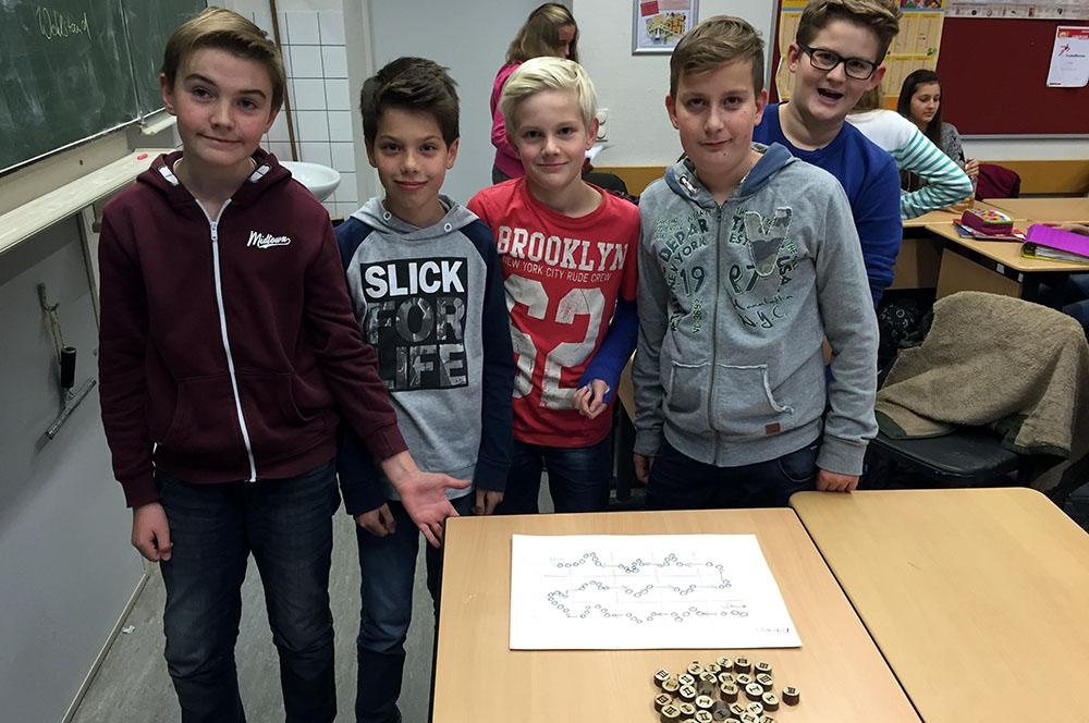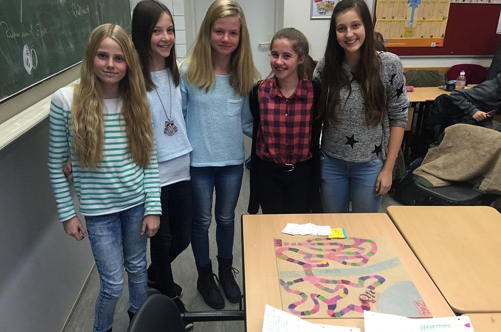 Wie kann man sich die Gesellschaft des Mittelalters nahebringen – und das in der 8. und 9. Stunde? Ganz einfach - die Klasse 7c hat mit ihrem Lehrer Herrn Hergemöller in Form von selbstentwickelten Gesellschaftsspielen einen Zugang gewählt, der mit Würfeln, Ereigniskarten und Quizfragen dazu aufforderte, sich mit dem Mittelalter auseinanderzusetzen. Wer bei den Spielen letztendlich als Sieger hervorgehen wollte, musste sein Fachwissen rund um die Welt der Könige und Adeligen, der Ritter, Bauern und Mönche unter Beweis stellen, welches sich beim Erstellen der Spiele angeeignet wurde. Beim finalen Ausprobieren der Spiele wurde zudem klar, dass auch noch ganz unerwartete Gefahren zu überstehen waren, wollte man tatsächlich als Gewinner vom Tisch gehen ...