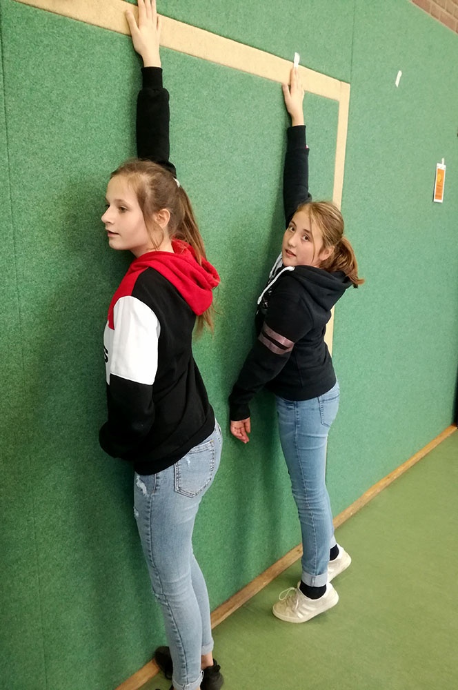 Dort fand nämlich der Workshop „Gesund mit Grips“ statt, an dem wir auch teilgenommen haben. Verschiedene Stationen des „Body+Grips-Mobils“ zu den Themen Soziales Miteinander, Bewegung und Sucht waren dort aufgebaut. Wir durften z.B. pantomimisch aktiv werden, oder unsere Geschicklichkeit beim Balancieren testen. Körperlich anstrengend wurde es dann beim Fitnesstest, den wir auch erfolgreich gemeistert haben.