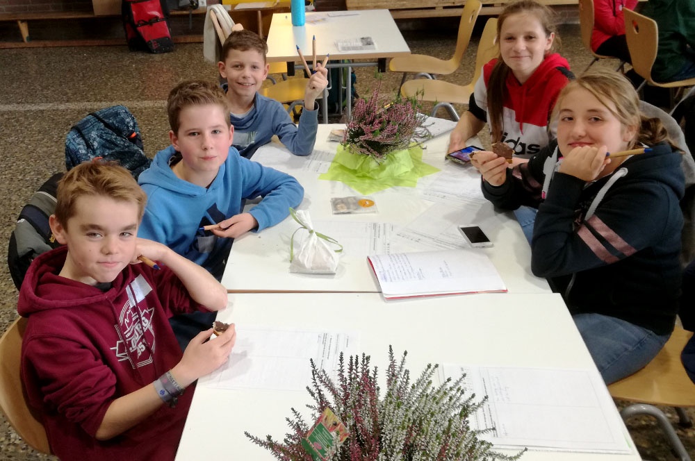 Am 14.11.2018 war Frau Schöne mit uns - 5 Schülerinnen und Schülern aus der Klasse 6d - in Münster bei der Schülerakademie „Fit for Food“. Dort haben wir mit SchülerInnen von 6 weiteren Schulen Workshops gemacht. Es war so aufgebaut, dass wir erst eine Willkommensrede und im Anschluss daran einen halbstündigen Vortrag einer Kinderärztin über Gesunde Ernährung, krankhafte Fettleibigkeit bei Kindern und den Folgen des krankhaften Übergewichts gehört haben. Danach haben wir in verschiedenen Workshops gearbeitet.