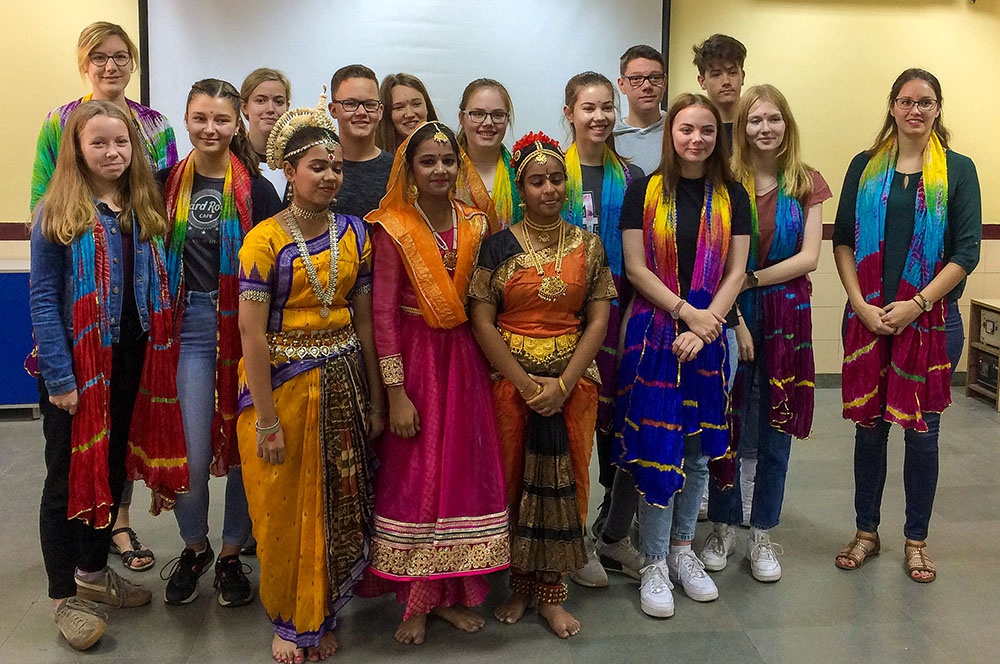 Eine völlig andere Kultur erleben und entdecken konnten 12 Schülerinnen und Schüler der EF und Q1. Während der Herbstferien verbrachte die Gruppe, die von Frau Grothues und Frau Weißnicht begleitet wurde, zwei eindrucksvolle Wochen in der indischen Hauptstadt Neu-Delhi. Neben dem Schulbesuch und der gemeinsamen Projektarbeit zum Thema „Fairy-tales, Mythos and legends - an expression of cultural identity“ gestalteten Schule und Gastfamilien ein vielfältiges Programm in und um Delhi. Ein besonderes Highlight war sicherlich der Ausflug zum Taj Mahal.