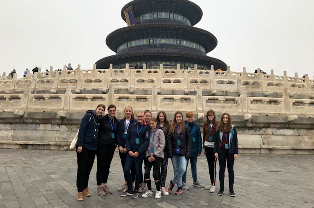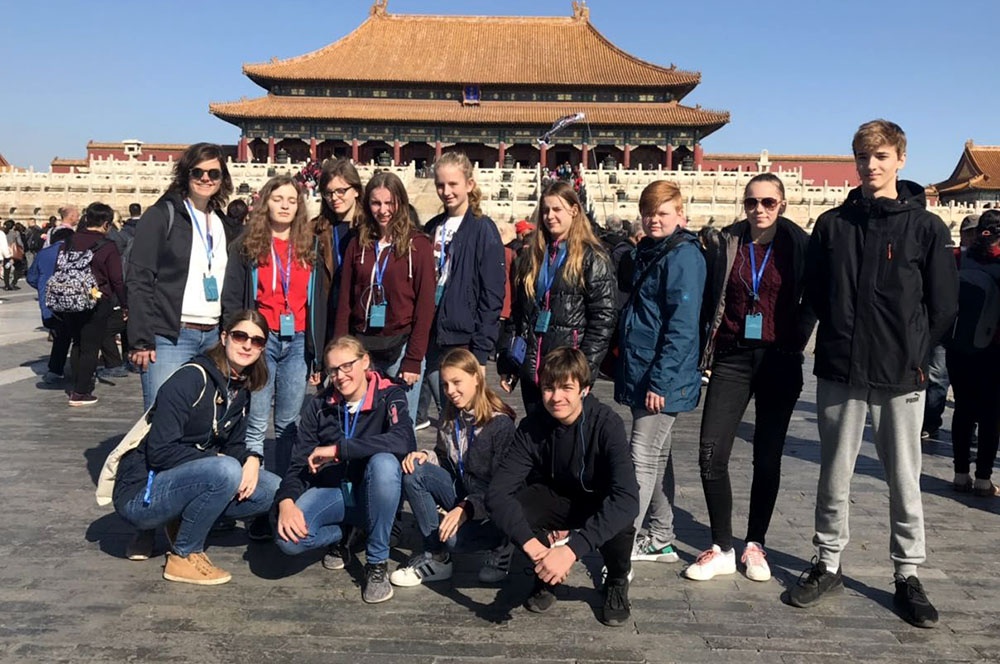 Am 14.10. machten wir uns (11 Schülerinnen und Schüler und unsere Begleitlehrerinnen Frau Drees und Frau Kruse) voller Vorfreude mit dem Zug auf den Weg nach Düsseldorf zum Flughafen. Dort stiegen wir ohne Komplikationen in den Flieger nach Beijing, der Hauptstadt Chinas.
