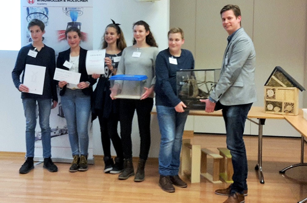 Wir gratulieren Len Achterholt (8d), Nora Geerds (8c), Julian Kühne (8d), Ella Moss (8b), Rosa Veltmann (9b) und Herrn Dr. Pickel, die für die NW-Kurse der Jahrgangsstufen 8 und 9 sowie die Zoo-AG den Schülerpreis der Adelheid Windmöller-Stiftung für ausgezeichnete MINT-Projekte verliehen bekommen haben.