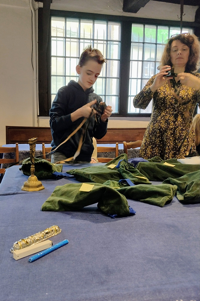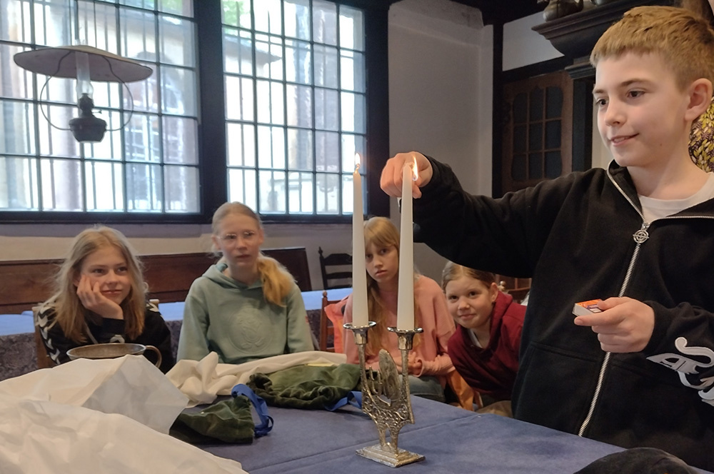 Wie lebten Menschen jüdischen Glaubens früher in Telgte und wie praktizieren Juden und Jüdinnen heute ihren Glauben? Diese und noch viel mehr Fragen haben die Schülerinnen und Schüler des 6. Jahrgangs am 17.04.24 in Telgte im Rahmen von vier Workshops beantwortet. In zwei Stadtführungen zur alten Synagoge und zwei Workshops im RELíGIO wurde jüdischer Alltag für 90 Kinder im wahrsten Sinne greifbar. Ob Matzen probieren, einen Gebetsmantel anprobieren oder die jüdischen Friedhöfe besuchen, die Schülerinnen und Schüler waren mit großem Interesse dabei und so wundert das Fazit „Das war richtig spannend!“ auf der Rückfahrt gar nicht.