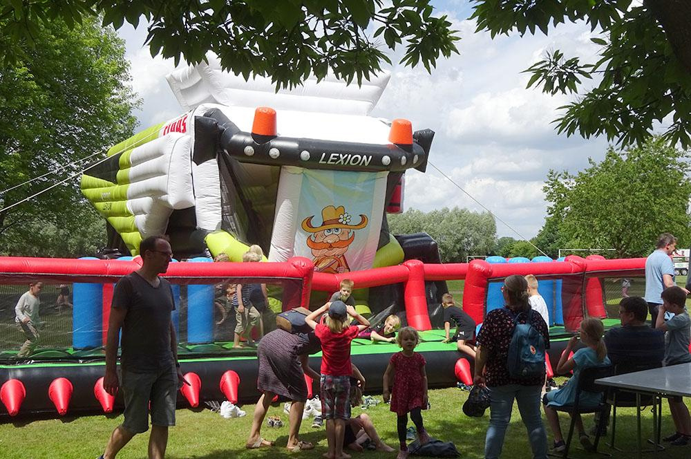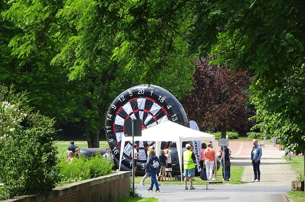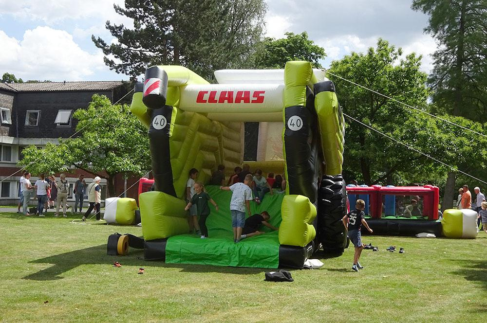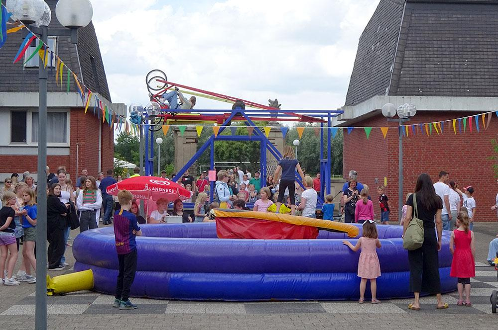 Zwei Jahre lang musste das Sommerfest pandemiebedingt ausfallen, zwei Jahre lang gab es für die Schüler*innen und Familien keine Gelegenheit, die Loburg und das Gelände einmal ganz anders zu erleben. Aber das Warten hat sich gelohnt. Eindrucksvoll meldete sich das Fest mit ganz viel Schwung und Euphorie zurück! „Wir Eltern und auch die Kinder kannten ja bislang noch gar kein Loburger Sommerfest. Wir haben uns wirklich sehr über diesen tollen Tag gefreut“, resümierte ein zufriedener Elternvertreter aus der 6b, der gemeinsam mit seiner Klassenpflegschaft gerade eine Riesenmähdrescher-Hüpfburg als sportliche Attraktion betreut hatte.