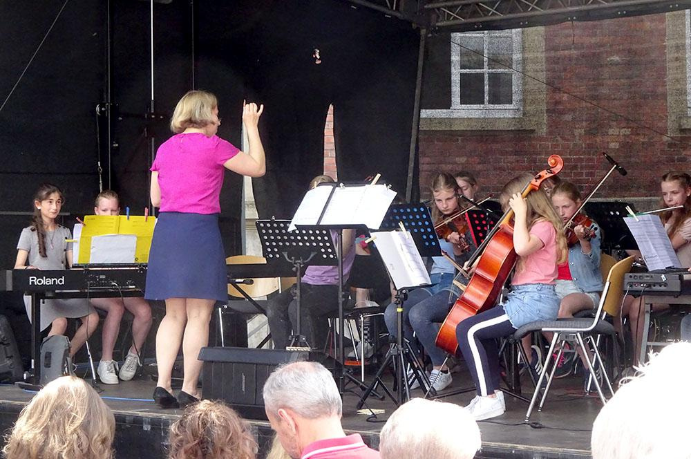 Bei launigem Bühnenprogramm, einem Mix aus Musik, Theater, Sport und Tombola, versüßten Kaffee und Kuchen aus der Schlossküche den Tag. Für eine tolle Atmosphäre sorgten die Internatsband um die Schülerin Ha Trang Le, das Ensemble Kunterbunt, geleitet von Frau Mai-Schier, die Unterstufenchöre von Frau Scheipers und Herrn Hellmons, kurzweilige Theaternummern der 5er von Herrn Sure, Rope-Skipping-Einlagen und Tanzpräsentationen aus den Kursen von Frau Sadowski und Herrn Lülf und die Moderation der Tombola durch Herrn Kleine-Büning.