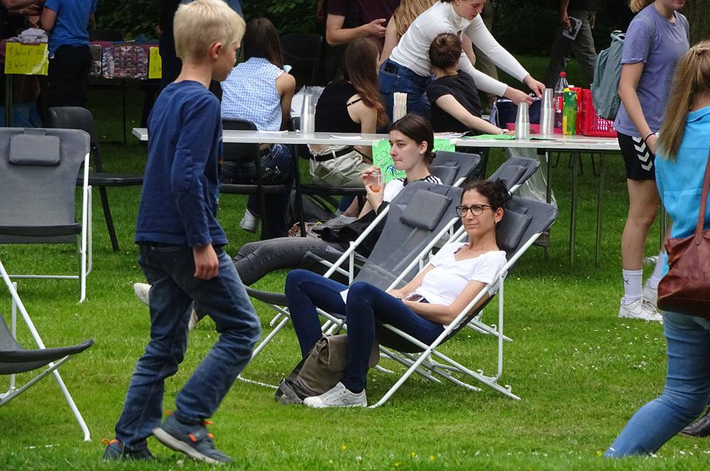 Aber auch die Miniwettbewerbe an den Klassenständen hatten es in sich: Bei Wasserpistolen-Duellen, Dosenwerfen oder Torwandschießen bewiesen Jung und Alt ihr Geschick. Nicht selten geriet man dabei in der Nähe der Pfadfinder-Feuerstelle ins Klönen über alte Zeiten oder man feixte im Schatten des traditionsreichen Showmatches im Völkerball zwischen Schülern und Lehrern - besonders wenn man nicht zur Lehrermannschaft gehörte, denn die hatten einmal mehr das (pädagogische) Nachsehen gegen die Schüler, die ihren Sieg am (alkoholfreien) Cocktailstand der Q1 gebührend feierten.