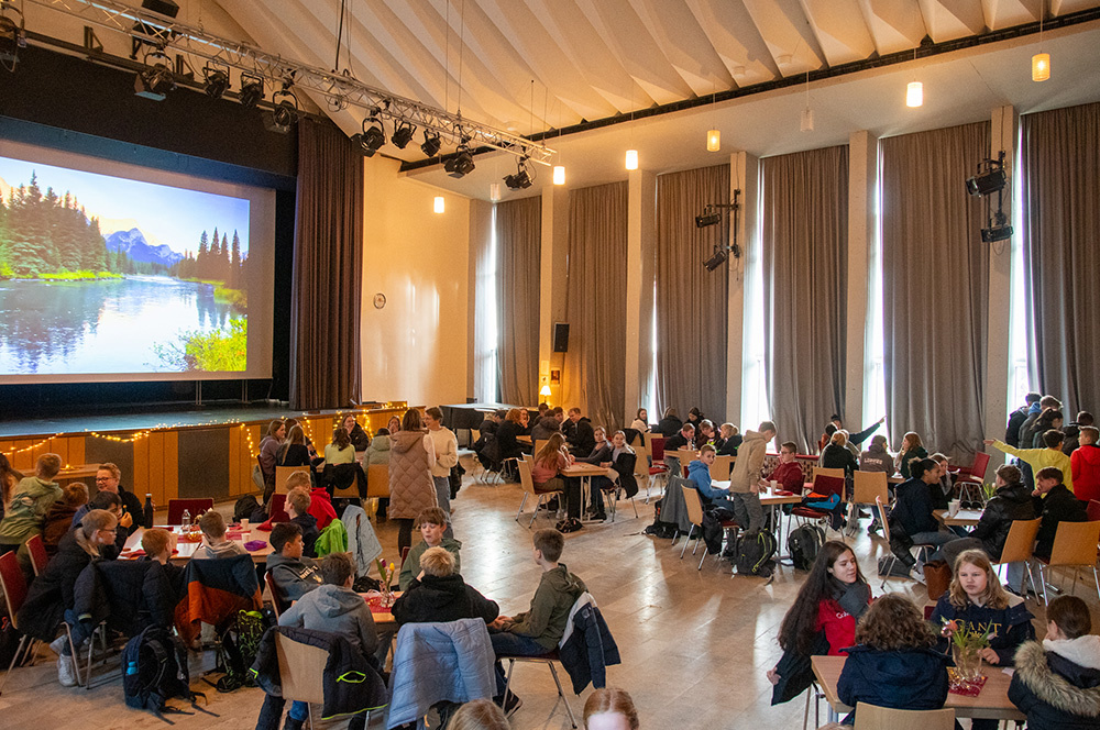 „Wir haben uns die Frage gestellt, wie wir den Schulalltag schöner machen und Oasen schaffen können, in denen wir zur Ruhe kommen können“, berichtet Theresa (16) von den ersten Gedanken. Stressige Prüfungswochen im November, dazu das triste Winterwetter: Viele Schülerinnen und Schüler hätten sich nach einer Unterbrechung im Alltag gesehnt. „Das können schon kleine Dinge sein“, sind sich Theresa und ihre SV-Kolleginnen Jona, Mira, Lea und Annalena einig. Eine andere Atmosphäre schaffen als die in der oft vollen und lauten Pausenhalle, dazu den ein oder anderen freiwilligen Impuls geben, um miteinander ins Gespräch zu kommen. Das Vorbereitungsteam hat dazu Fragen ausgewählt, auf Karten geschrieben und auf den Tischen verteilt. Auch zum Kartenspiel „Black Stories“ kann gegriffen werden.
