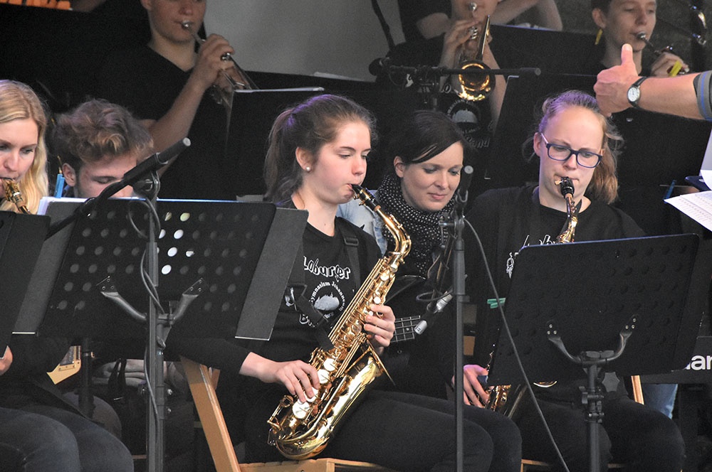 Als Hauptanziehungspunkt bot sich die Bühne mit ihrem vielfältigen Programm über den ganzen Tag hinweg an. Darunter begeisternde Tanz- und Theatereinlagen der sechsten und siebten Jahrgänge unter der Leitung von Hr. Kleine Büning, der sich zugleich auch als höchst unterhaltsamer Moderator zur Verfügung stellte. Musik kam vom bestens gestimmten Schulchor unter der Leitung von Hr. Hellmons und der wie in jedem Jahr begeisternden Loburger Big-Band unter der Leitung von Hr. Kunert.