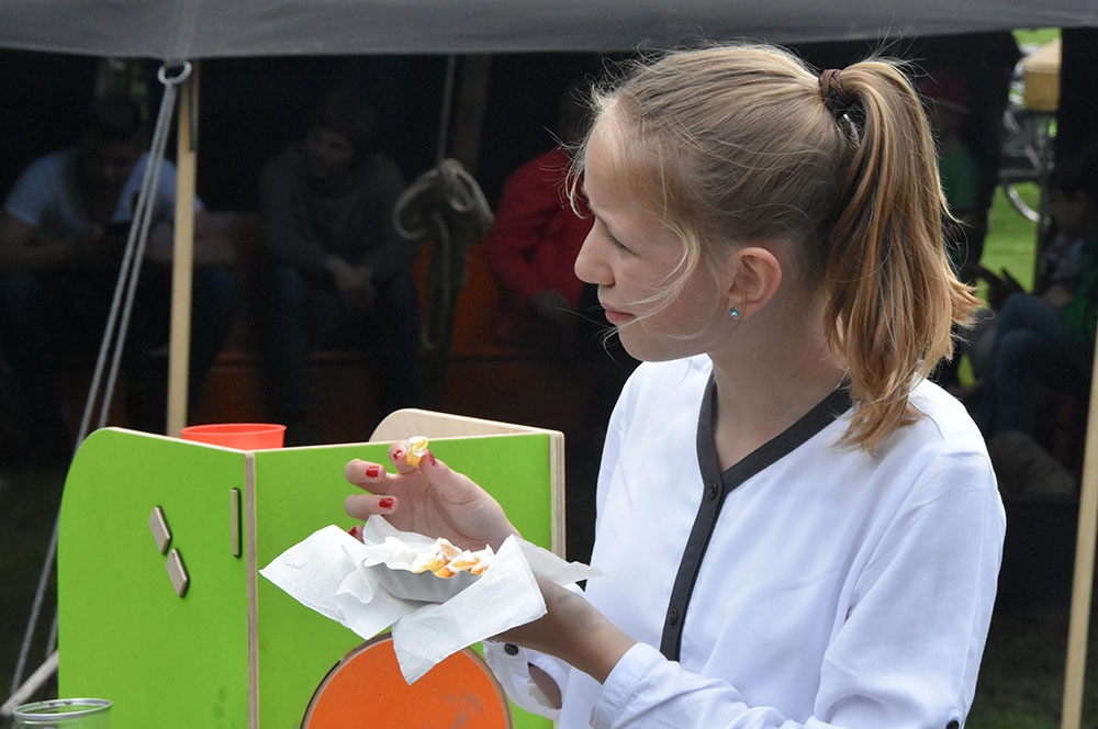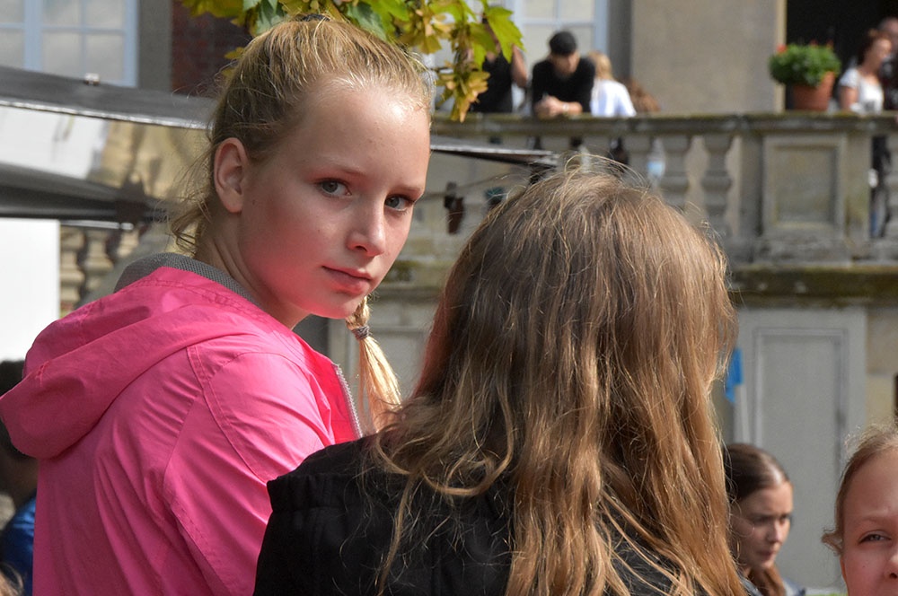 Aber nicht nur draußen gab es viel zu entdecken: Im Schloss türmten sich geradezu die hochwertigen Preise der Tombola, für die sich die Eltern der Klasse 7 verantwortlich zeichneten und denen –neben den lokalen Firmen und Sponsoren- ein ganz großes Dankeschön an dieser Stelle für ihren unermüdlichen Einsatz gebührt. Im Schloss waren neben dem Schminkstand der EF-Kunstkurse auch Cafeteria und Eiscafe untergebracht, mit denen ebenso wie die Imbissmöglichkeiten und vor allem dem liebevoll eingerichteten und fantastisch mixenden Coktailstand der Q1 auf dem Schlossplatz eine Stärkung gesichert war. Stockbrot gab es im Zelt der Pfadfinder, die dankenswerterweise wie der Malteser Hilfsdienst und die freiwillige Feuerwehr die Veranstaltung unterstützten.