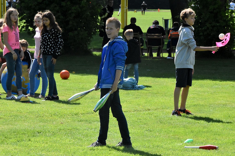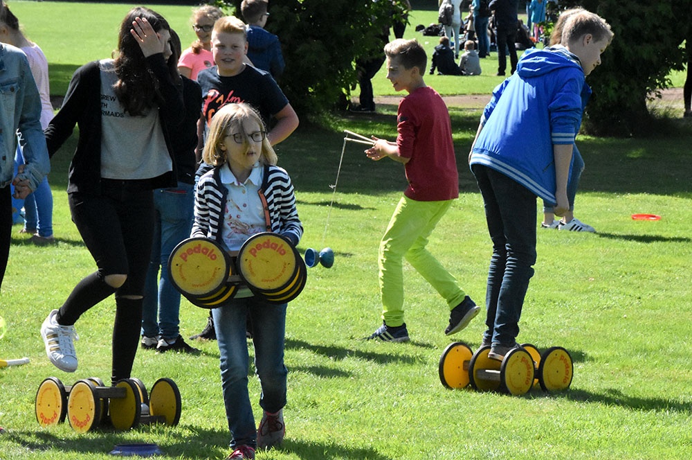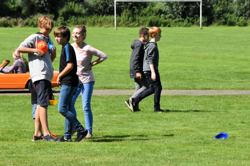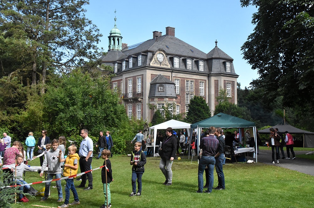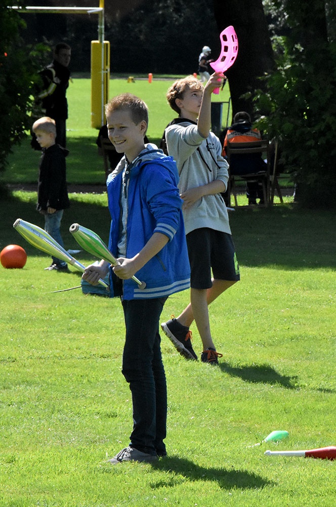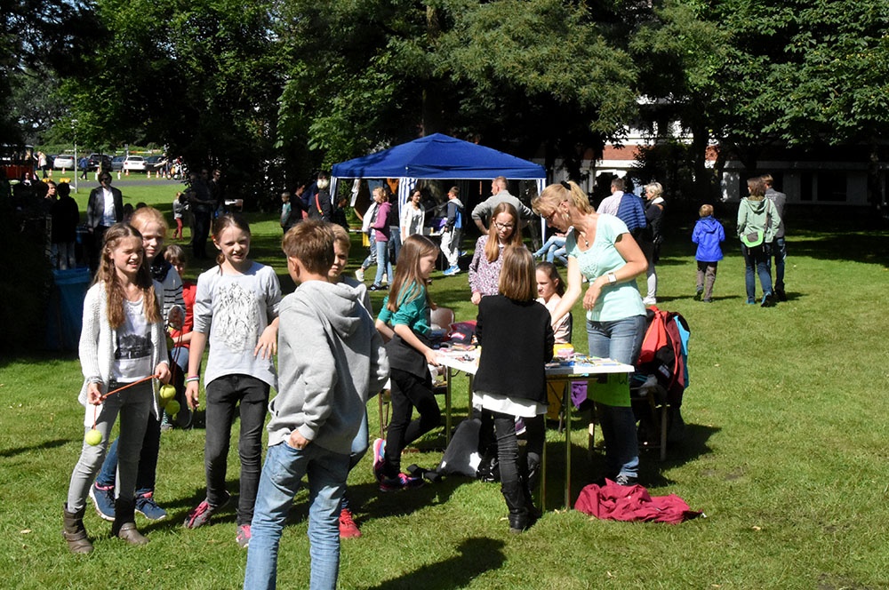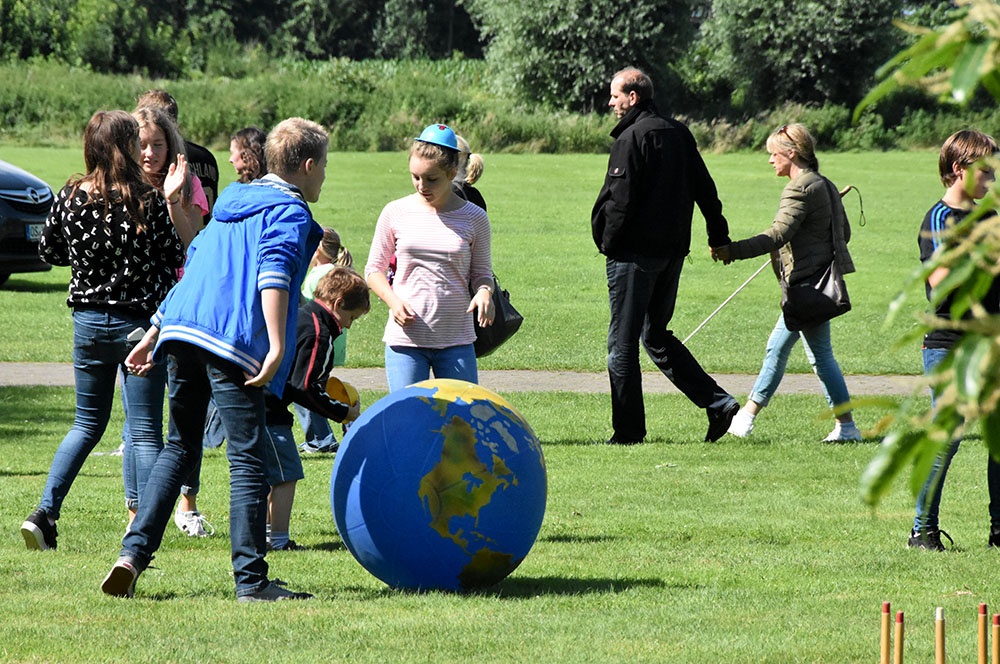 Abwechslung pur hieß es am letzten Samstag vor den Sommerferien bei unserem traditionsreichen Sommerfest der Loburg. Denn nicht nur das Wetter hielt einen Regen-Sonnen-Mix bereit sondern auch die Loburger ein vielfältiges Unterhaltungsprogramm aus Spiel, Sport und ganz viel Spaß etwa bei den verschiedenen Gewinnspielen auf dem Rasen, die vom Dosenwerfen über ein riesiges Spielemobil bis zum Glücksrad reichten und von hochmotivierten Kindern, Eltern und Klassenlehrern der Unterstufe betrieben wurden. Zwischen Bimmelbahn und Hüpfburg konnten Groß und Klein auch Kanu auf der Gräfte fahren, die hauseigene Football-Mannschaft (Beavers) anfeuern, eine Mäusefallen-Challenge verfolgen, motorisierte Mini-Autos steuern, Feuerwehr mit echten Feuerwehrmännern und deren Nachwuchs spielen oder Lehrer beim Dosenwerfen zu Fall bringen.