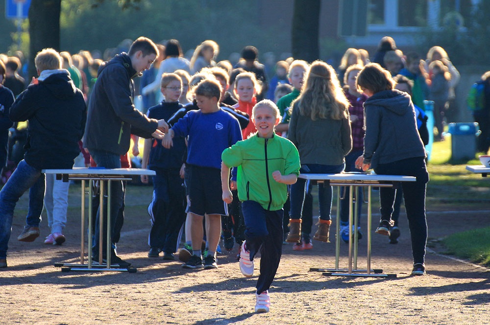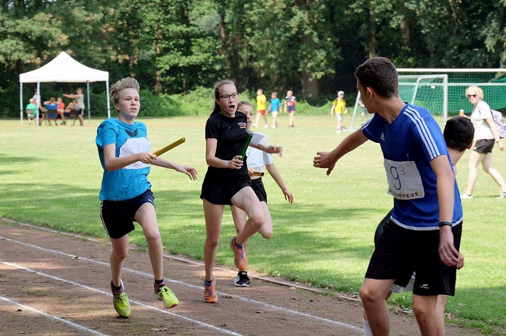 Bei den Bundesjugendspielen haben unsere Schülerinnen und Schüler die Möglichkeit, sich in den leichtathletischen Disziplinen Laufen, Springen und Werfen innerhalb ihrer Altersklasse zu messen. Traditionell enden die Bundesjugendspiele mit einem Staffellauf, bei dem die Klassen 5 – 9 gegen ein Lehrerteam antreten.