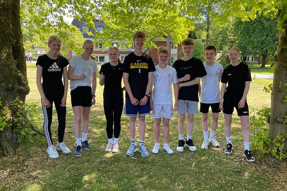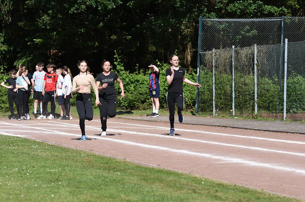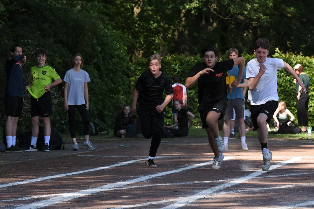 Belohnt wurde die Leistung der Sportler:innen mit Urkunden. Als krönender Abschluss des Sportfestes fand anschließend der traditionelle Staffellauf statt (8x100m der jeweils jahrgangsschnellsten Jungen und Mädchen): Hier konnten die 5er die 6er auf den zweiten Rang verweisen. Das Team der Lehrer wurde nach einem fulminanten Start letztlich starker Dritter. Den Lauf der 7er, 8er und 9er konnten die 8er mit einer Zeit von 2:01 min. knapp vor den 9ern und den 7ern für sich entscheiden.