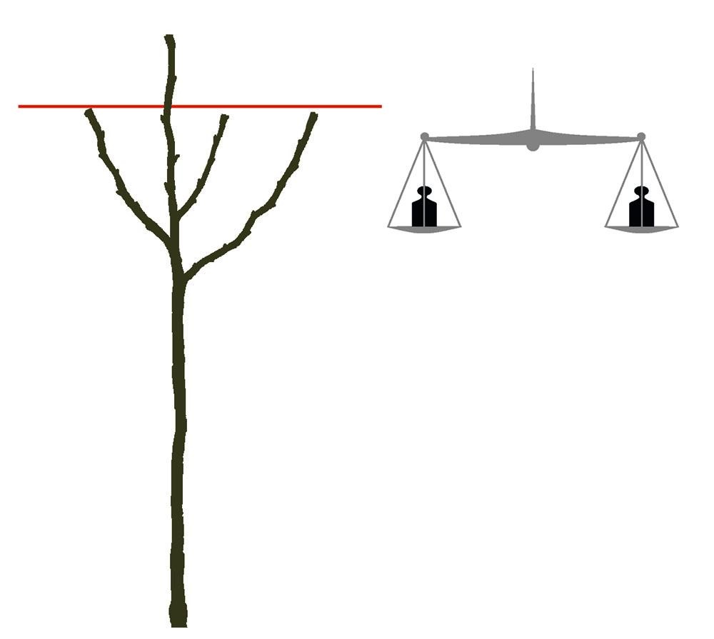 Ein weiteres Ziel des Verjüngungsschnitts ist es, dass nach einer stattgefundenen Baumansprache (genaue Betrachtung des Baumes) ein Gleichgewicht zwischen den Leitästen und der Stammverlängerung entsteht.