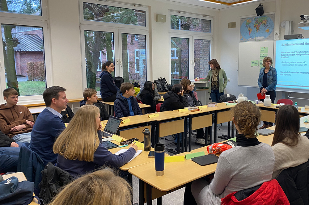 Die Loburg ist seit vielen Jahren Fairtrade-School und engagiert sich in diesem Zusammenhang durch die Unterstützung von Projekten und Aktivitäten zum Thema Umweltschutz und Nachhaltigkeit. In Zusammenarbeit mit Vamos e.V. wurde am 14.9.2029 eine Mitmachstation an der Bever in Ostbevern eröffnet, bei deren Planung bereits Herr Frönd und Herr Bopp mit Loburger Schüler*innen und die ostbeveraner Steuergruppe fair & nachhaltig beteiligt waren.