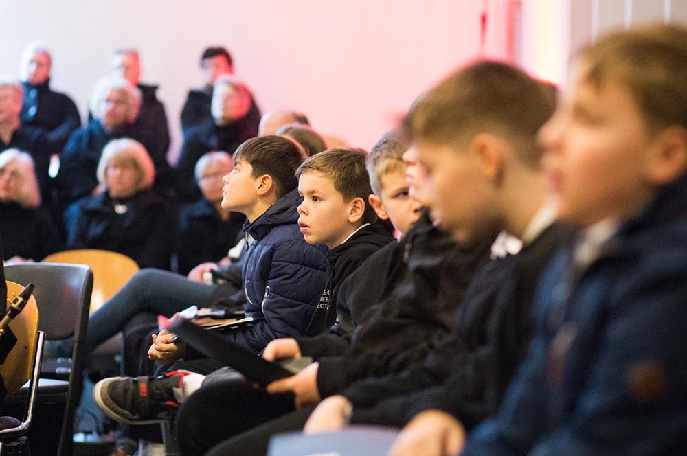 Der Loburger Knabenchor führte im Wechselgesang mit der Gemeinde ins Konzert ein: Wir sagen euch an den lieben Advent. Der klare und natürliche Gesang der Jungen berührte das Publikum auch mit weiteren traditionellen Advents-und Weihnachtsliedern wie Stimmet Hosianna an, das von dem Streichertrio Carolina Brinkmann, Pauline Wallmeier und Julius Käller begleitet wurde.