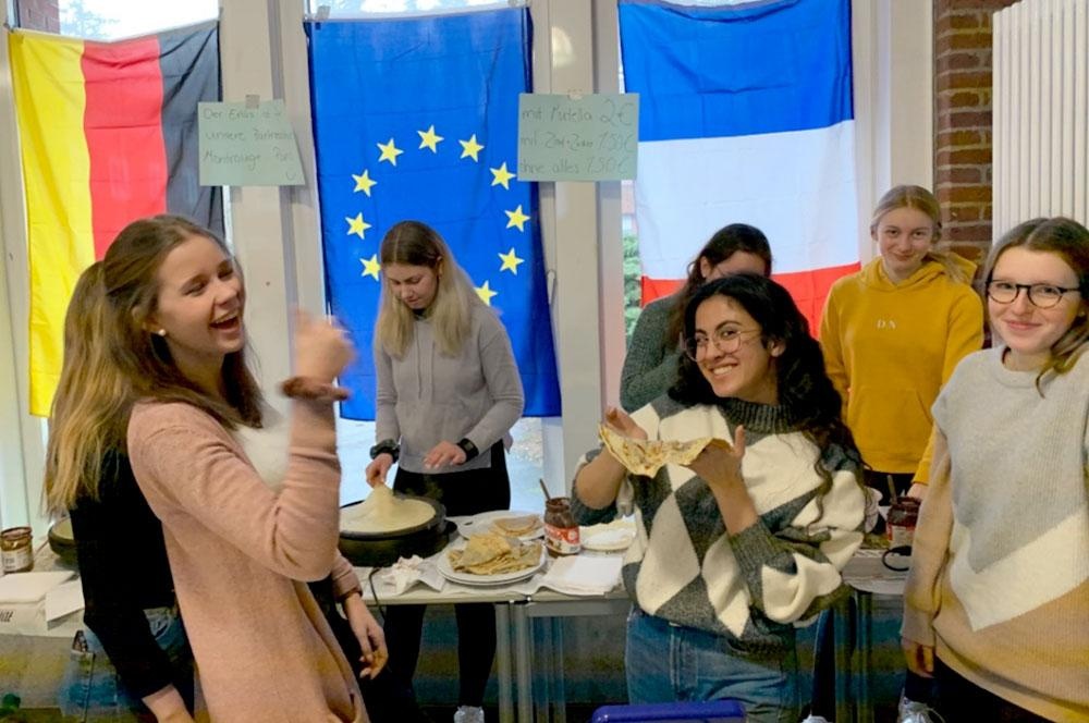 Dadurch werden einige soziale Projekte dort vor Ort unterstützt. Am Mittwoch, den 22.01.20 haben wir in unserer ersten und zweiten Pause in der Pausenhalle an zahlreiche Schüler Crêpes in verschiedenen Varianten verkauft. Den dadurch entstandenen Erlös von ca. 300 € wird Madame Maignant, eine Lehrerin der französischen Schule, mit Freude am 27.01.20 von uns entgegennehmen und es anschließend den Schwestern überreichen.