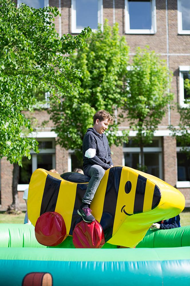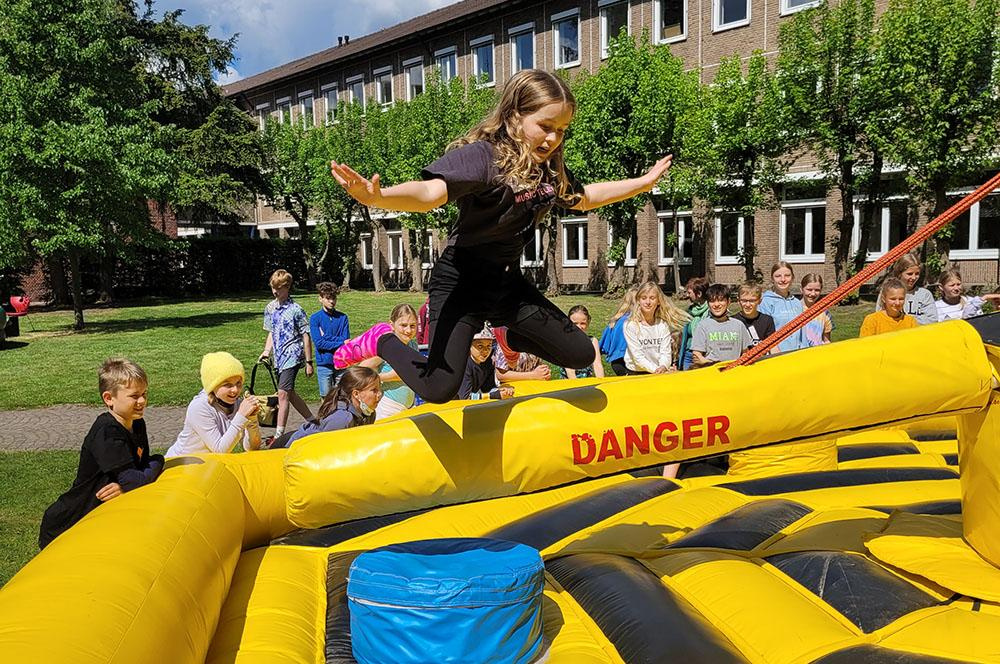 Am Donnerstag, den 12. Mai, fand an der Loburg kein Unterricht statt. Auf dem Gelände der Schule waren am Vortag insgesamt 20 Attraktionen aufgebaut worden, an denen die Schüler*innen des Gymnasium Johanneum in Ostbevern in 32, nach dem Zufallsprinzip gemischten Gruppen ihre vielfältigen Fähigkeiten unter Beweis stellen konnten.