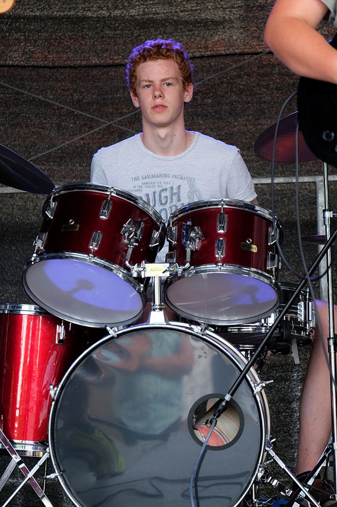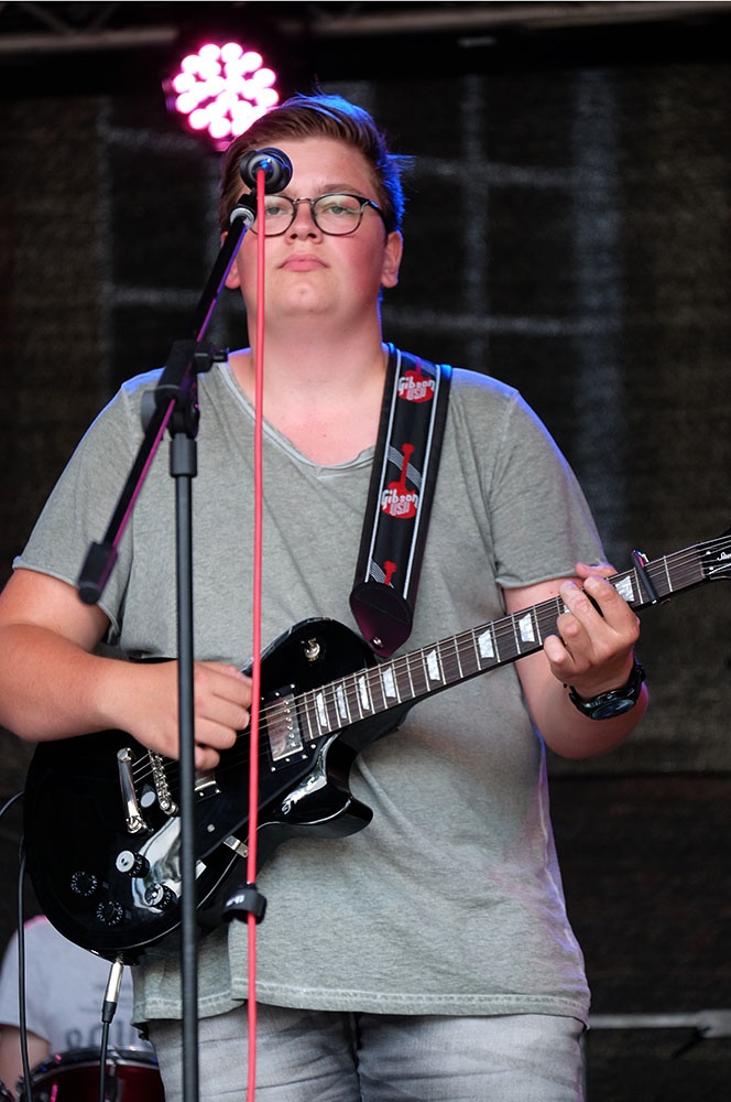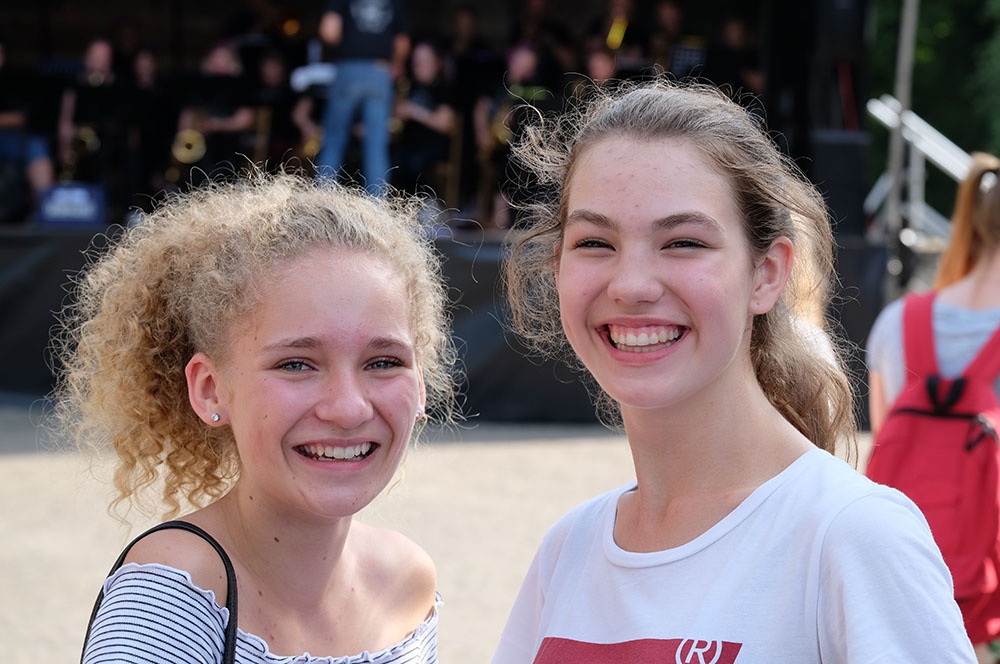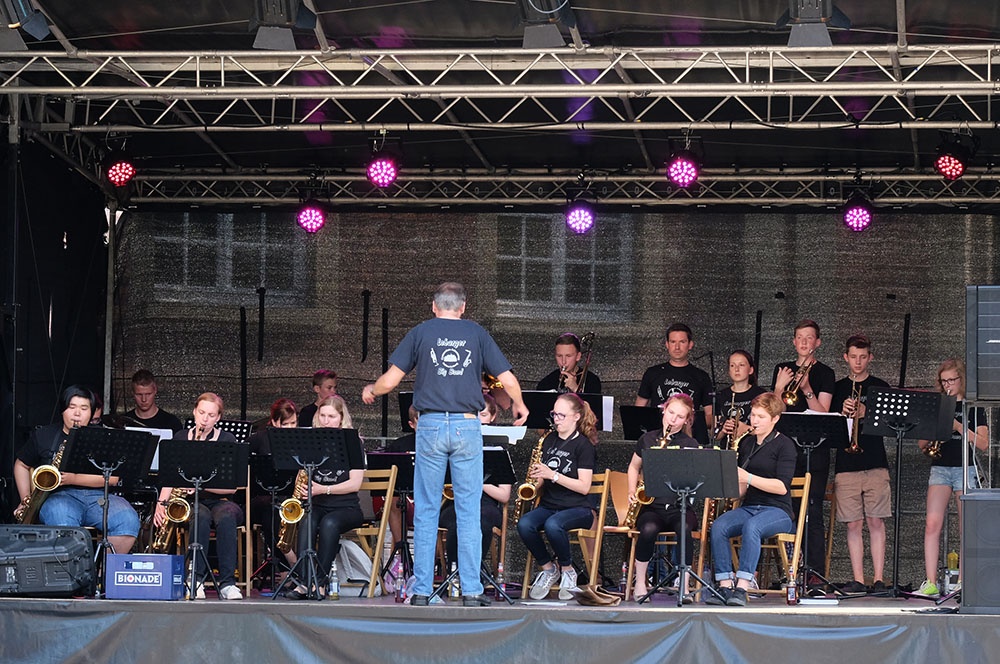 Währenddessen führte T. Demmer ebenso eloquent wie unterhaltsam durch ein buntes und abwechslungsreiches Bühnenprogramm, zu dem verschiedene Lobuger Gruppierungen von Schule und Internat beitrugen. Hier gab es neben Tanzeinlagen und einem selbst geschriebenen und inszeniertem Theaterstück der Klasse 5d erstmalig auch die Spielshow „Klein gegen Groß“, bei der sich die „kleinen“ Herausforderer mittels Applaus-Barometer sämtlich durchzusetzen wussten. Besonders zu überzeugen wussten auch die Musik-Gruppen um die Loburger Sisters und auch die absolute New-Comer Schülerband „Who got the keys“, welche eine beeindruckende Kostprobe ihres Könnens zeigten. Krönendes Highlight war dann wieder einmal der Auftritt der Loburger Big Band unter der Leitung von Hr. Kunert, die vor herrlicher Kulisse und von den Hausmeistern besonders dekoriertem Gelände auf der Schlossbühne die Besucher begeisterten.