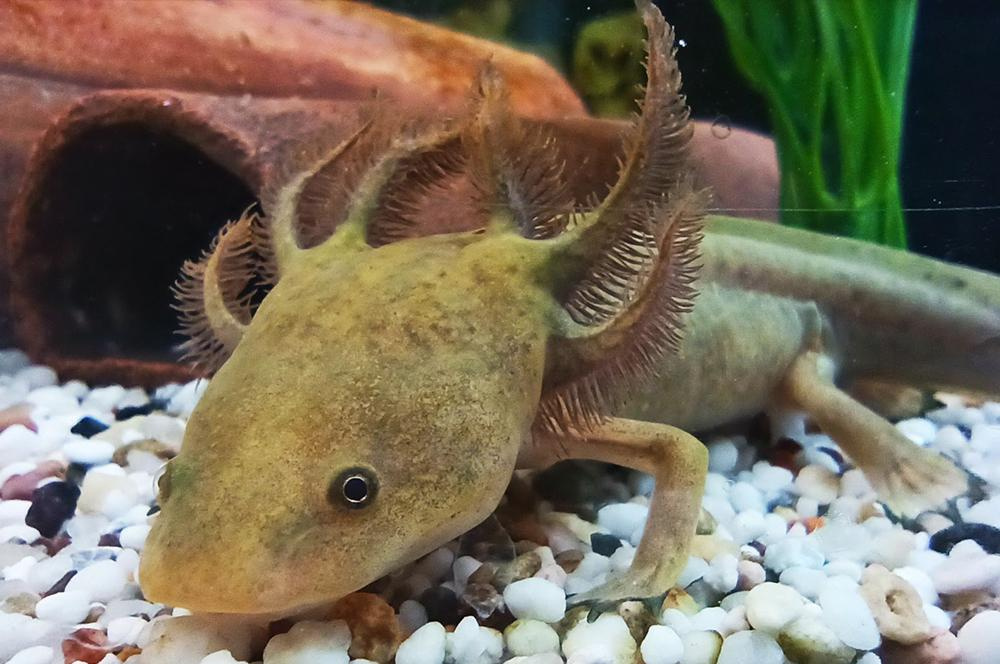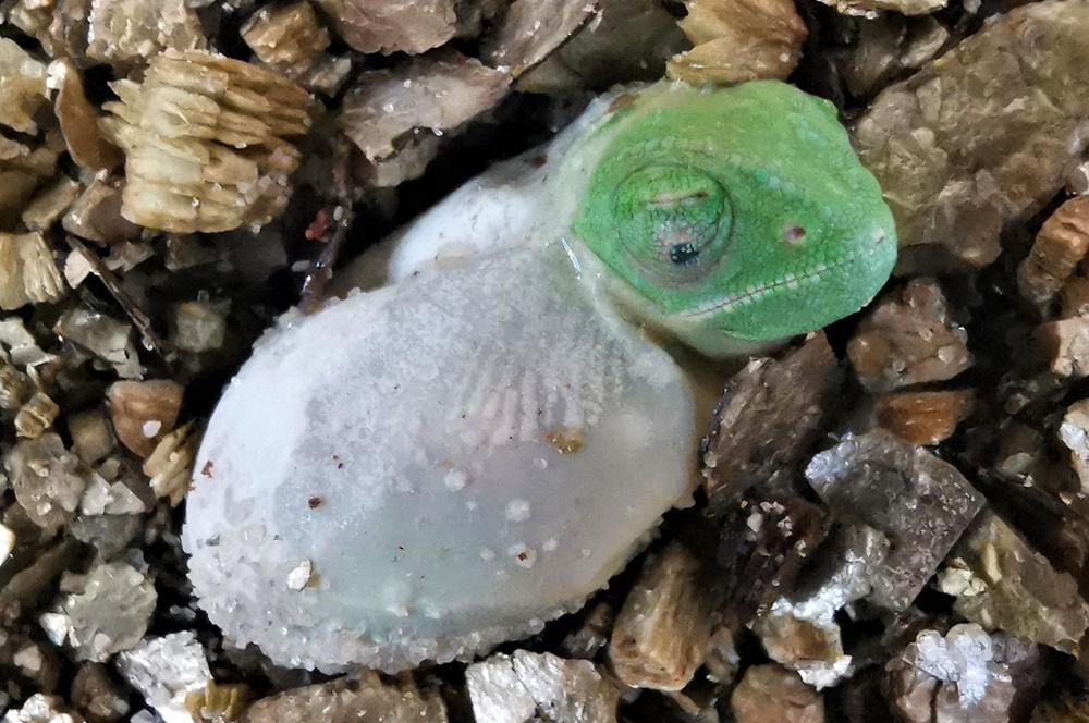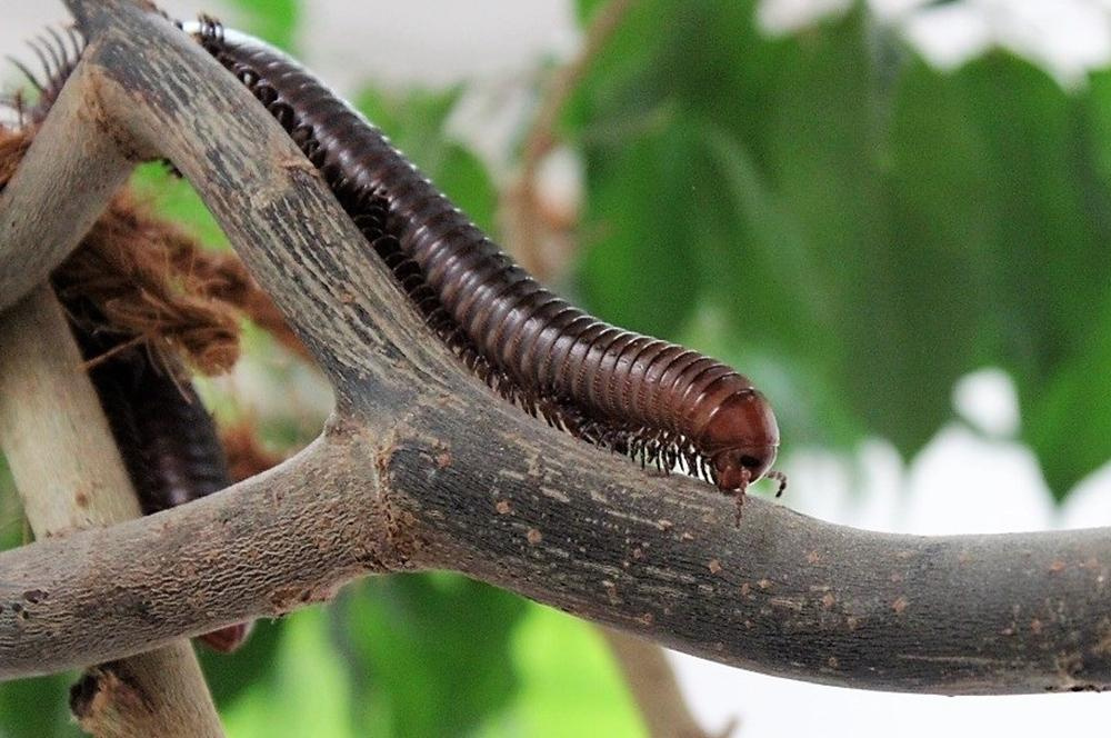 Patzcuaro-Querzahnmolch; Feuerkopf-Tausensfüßer (Foto: Maja-Luisa Bürger); schlüpfendes Jemen-Chamäleon (Foto: Laura Schräder);