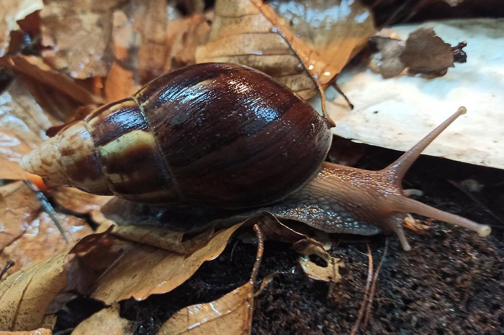 Achat-Schnecke; Mallorca-Geburtshelferkröte, Malawiseeaquarium mit Buntbarschen, Fiederbartwelsen und einem Wabenschilderwels.