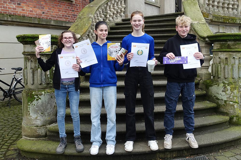 Alle Siebtklässler haben tolle Leistungen abgeliefert! Herausragend waren in der 7a Helene Holtmann, Anna Bosecker und Linn Herter (Plätze 1-3), in der 7b Jenny Benesch, Julia Harder und Pawel Wittenberg (Plätze 1-3) und in der 7c Luisa Bröker (1. Platz), Lennart Hagemann (2. Platz) sowie Merle Buller und Selin Toksözlü (jeweils 3. Platz). Chapeau et félicitations!